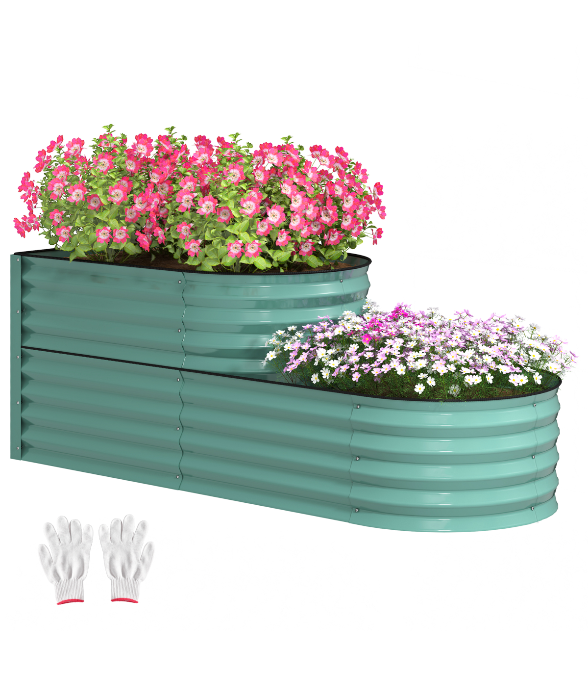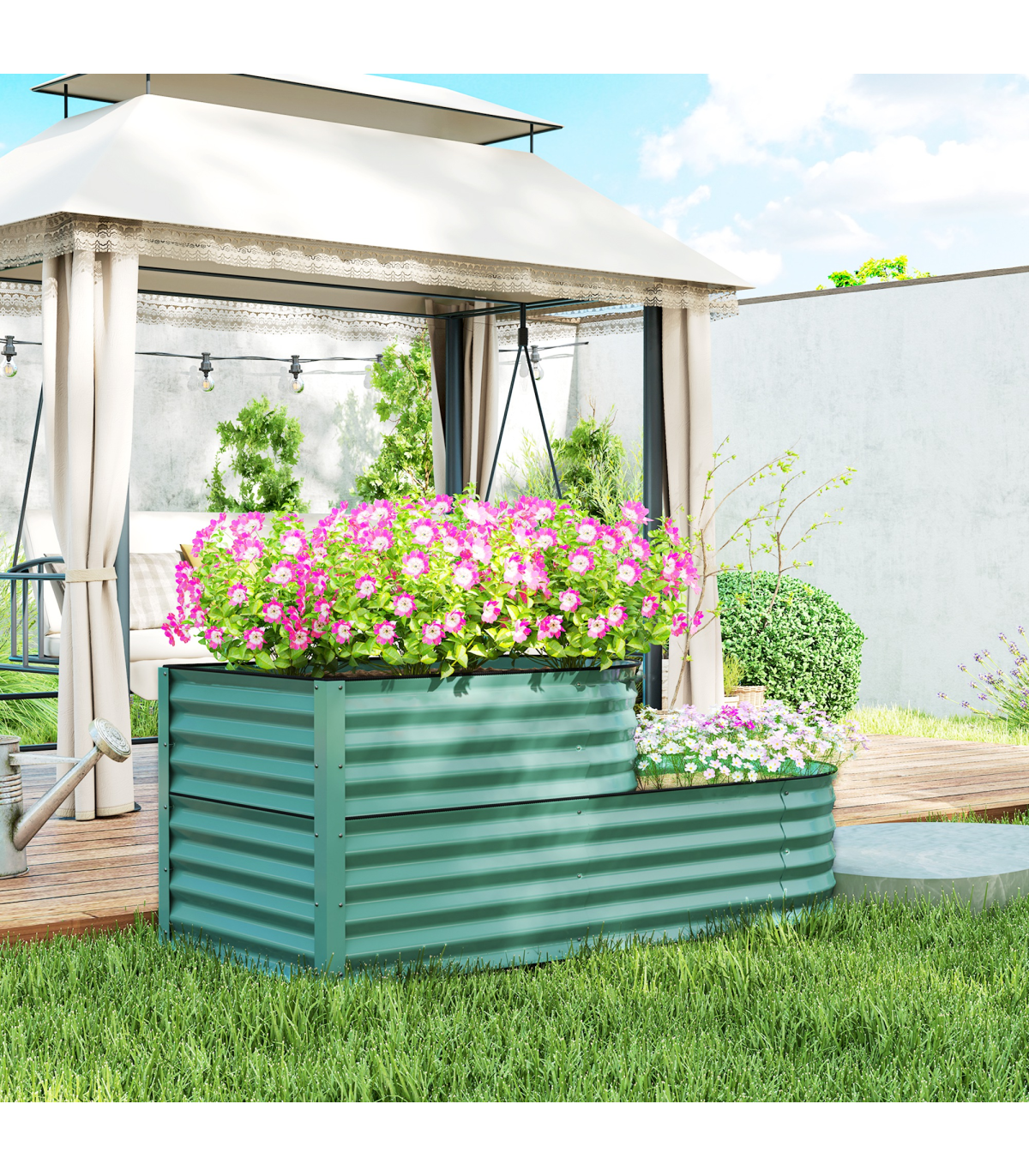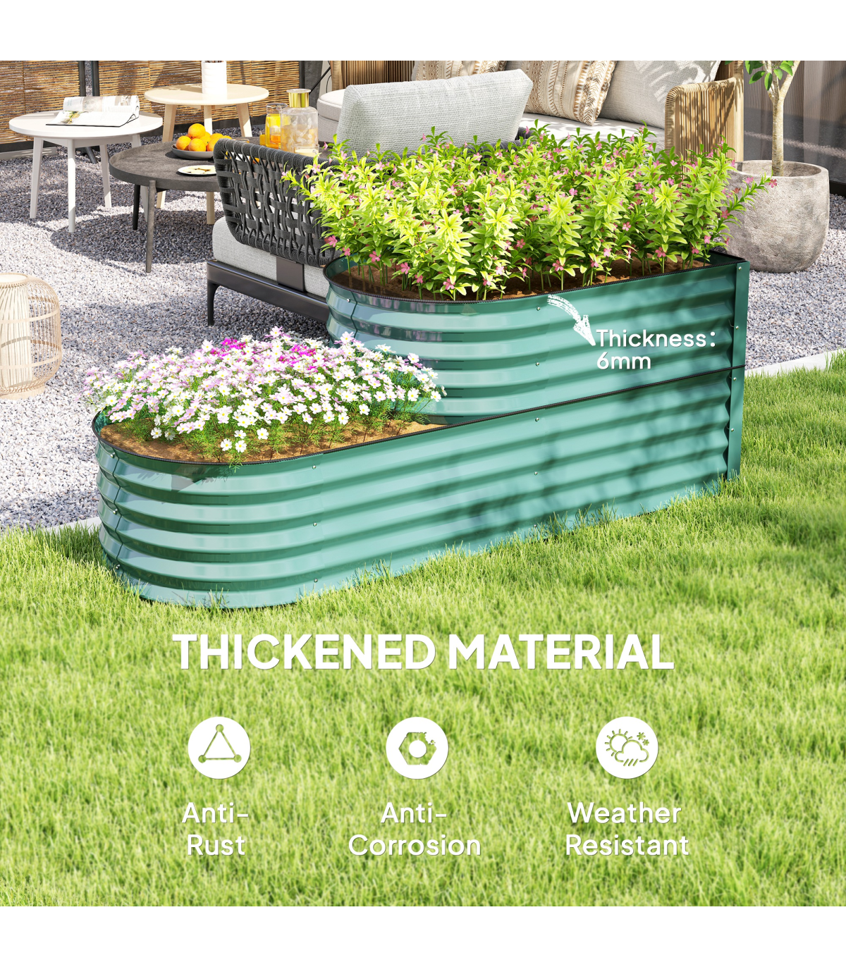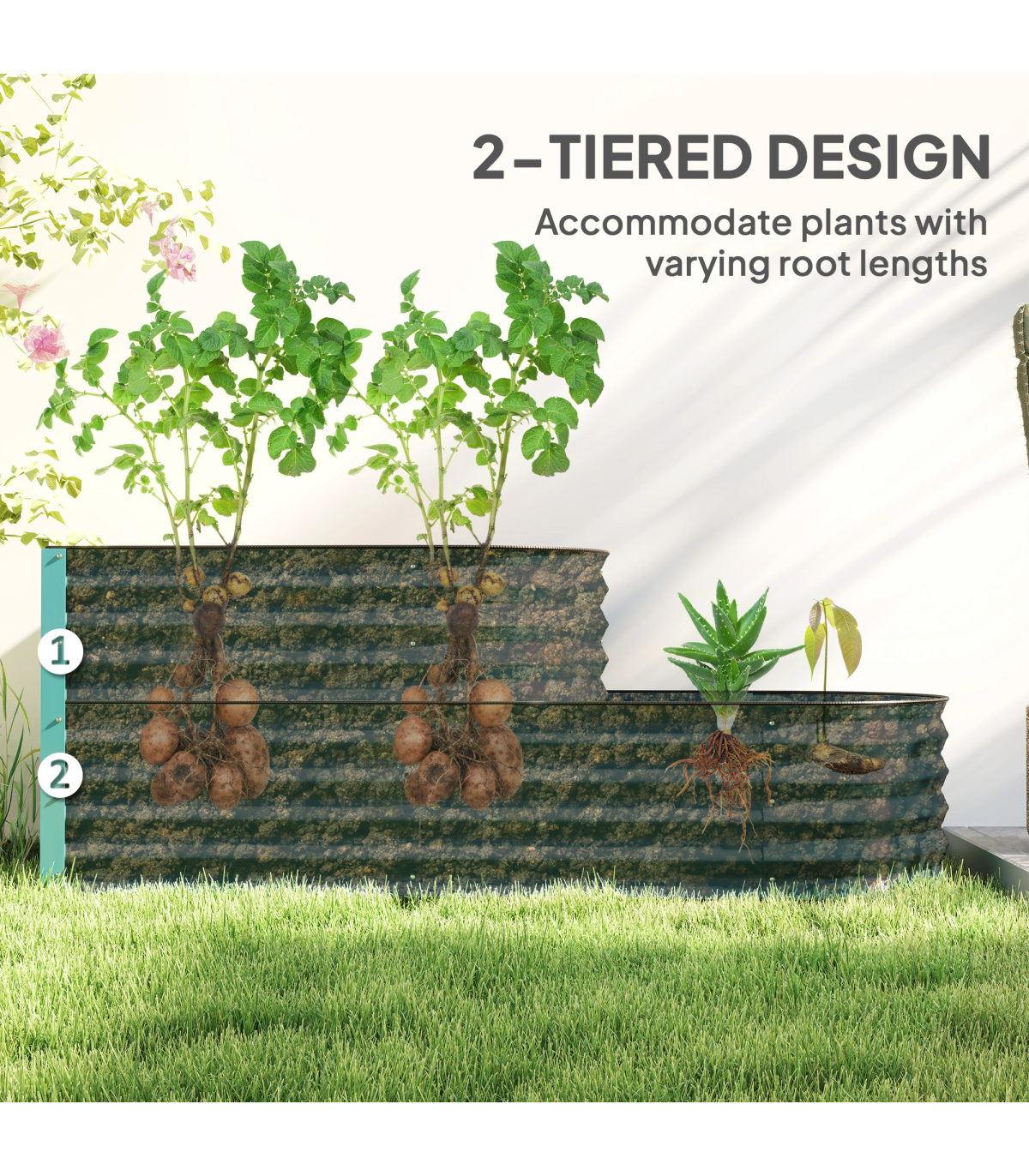 Outsunny 2-Tier Galvanised Raised Garden Bed with Safety Edging, Dark Green