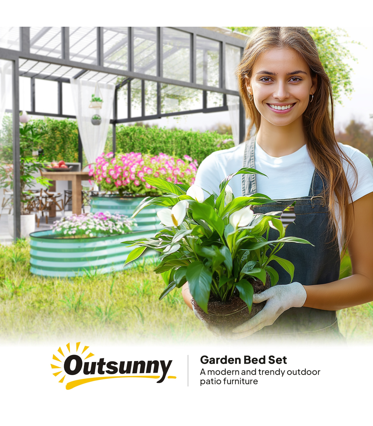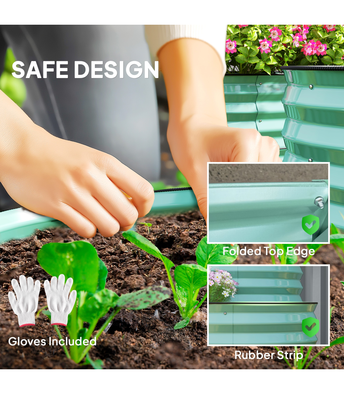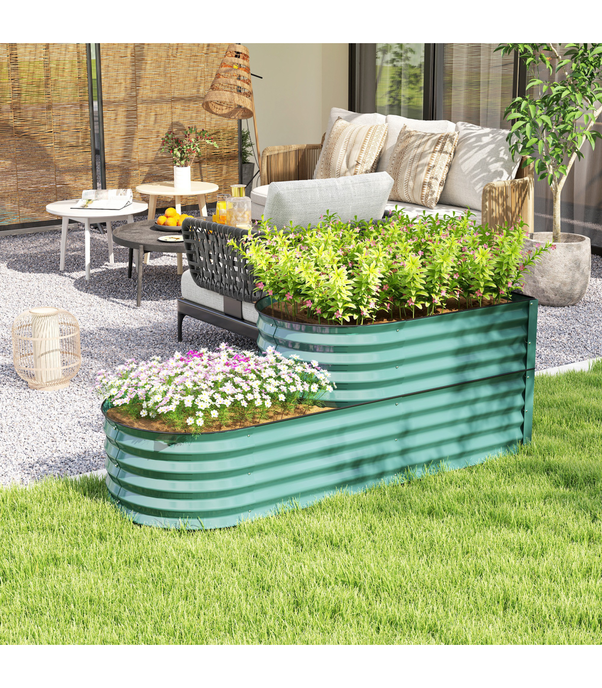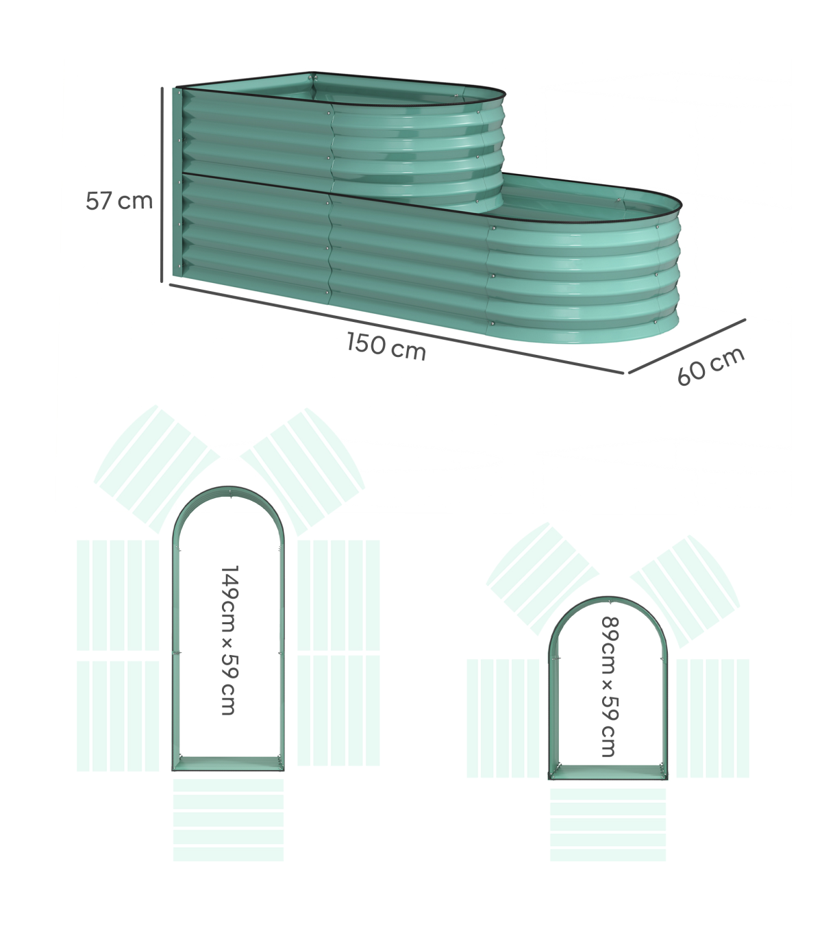 Outsunny 2-Tier Galvanised Raised Garden Bed with Safety Edging, Dark Green