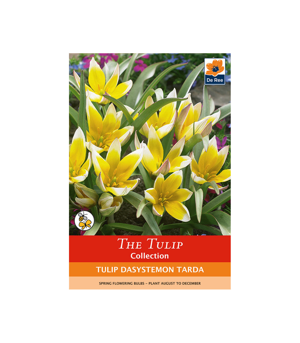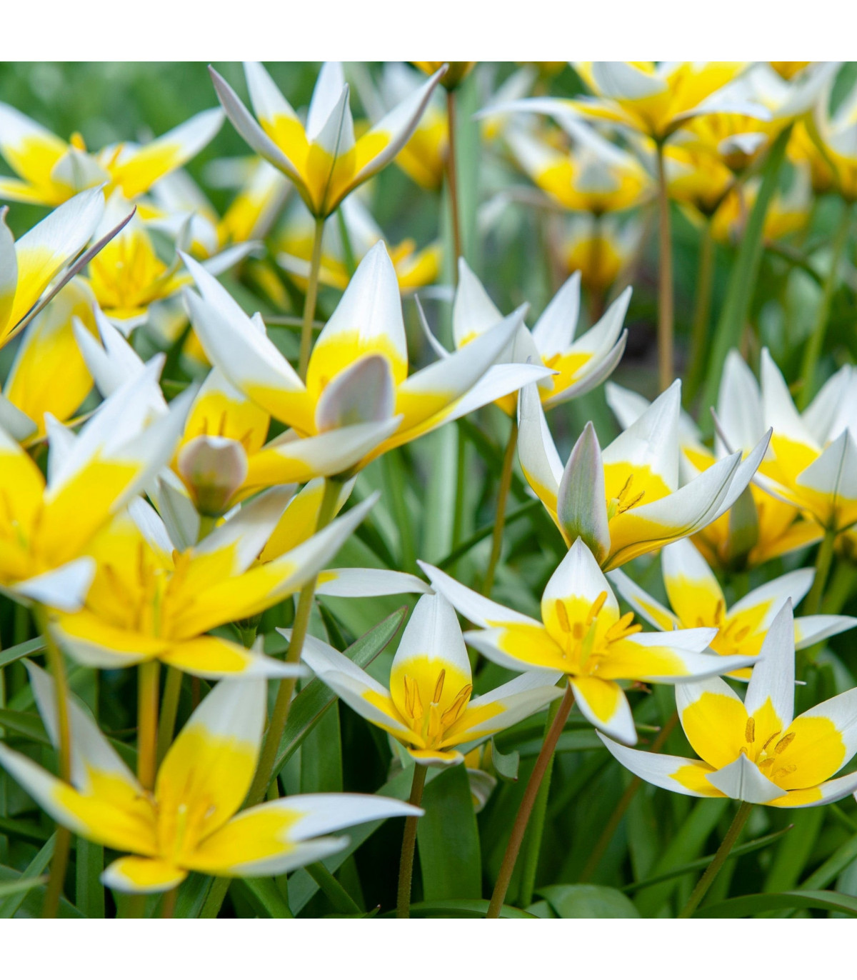 This tulip doesn’t actually look quite like a tulip, they have star-shaped buttercup coloured blooms tipped with snow white on each petal. A botanical tulip that will produce a beautiful display each year.
