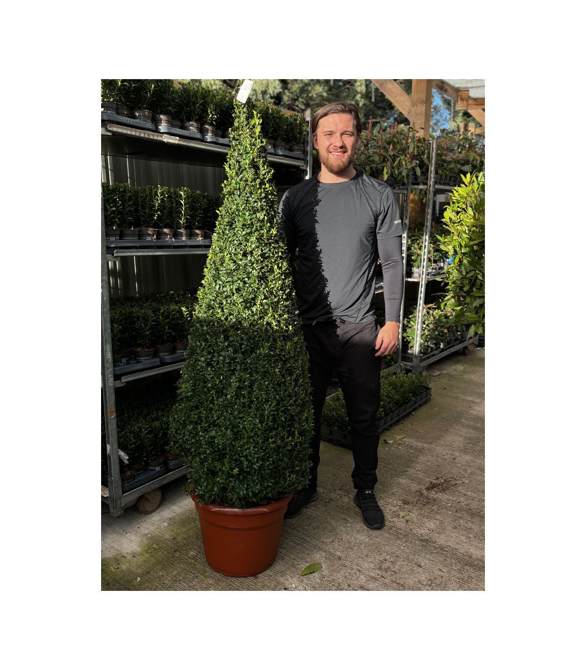 Small leaved tightly grown evergreen box plants. These topiary cones look wonderful planted in containers, either side of a doorway or planted directly in your garden displays to add all year round evergreen structure. They are slow growing and because of this they are very low maintenance and may only need a small clip to keep it in shape twice a year. Otherwise known as Box Hedging or Buxus Sempervirens.