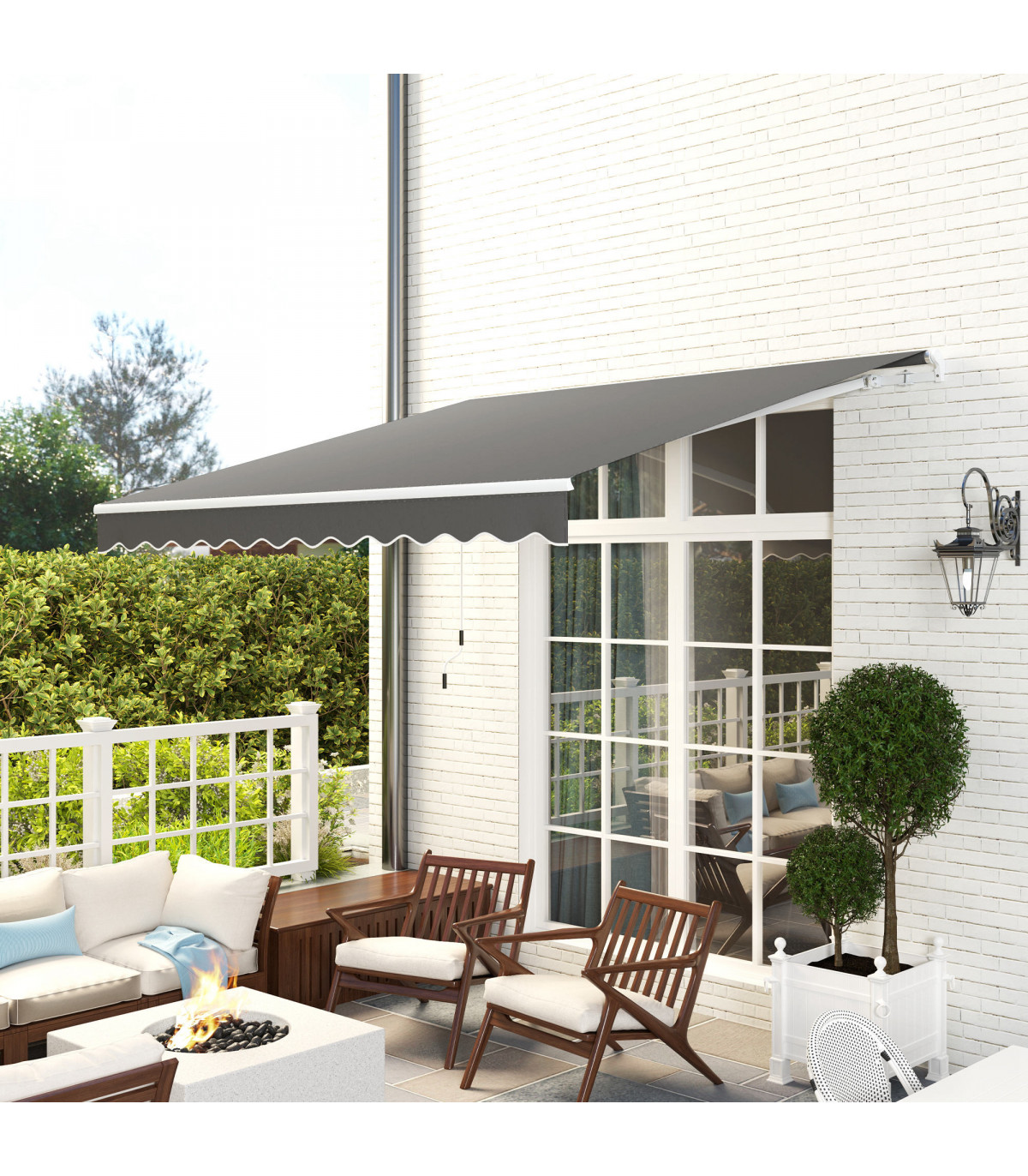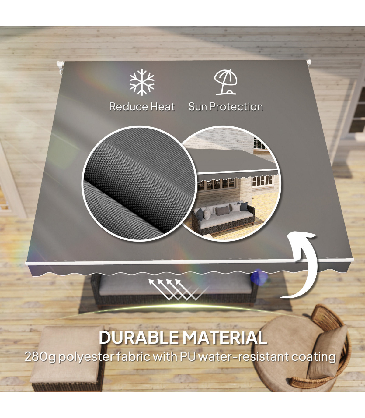Featuring a thick sun-shielding canopy on an aluminium frame, this 2.95 x 2.5m garden awning from Outsunny provides sufficient shade for the season. Its manual design allows flexible setup above doors or windows and it easily mounts onto your preferred surface with all accessories included. Finished with a crank handle for easy operation, this patio canopy is great for enjoying the outdoors like never before.