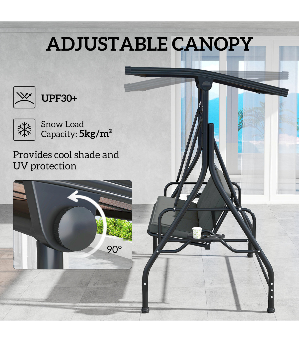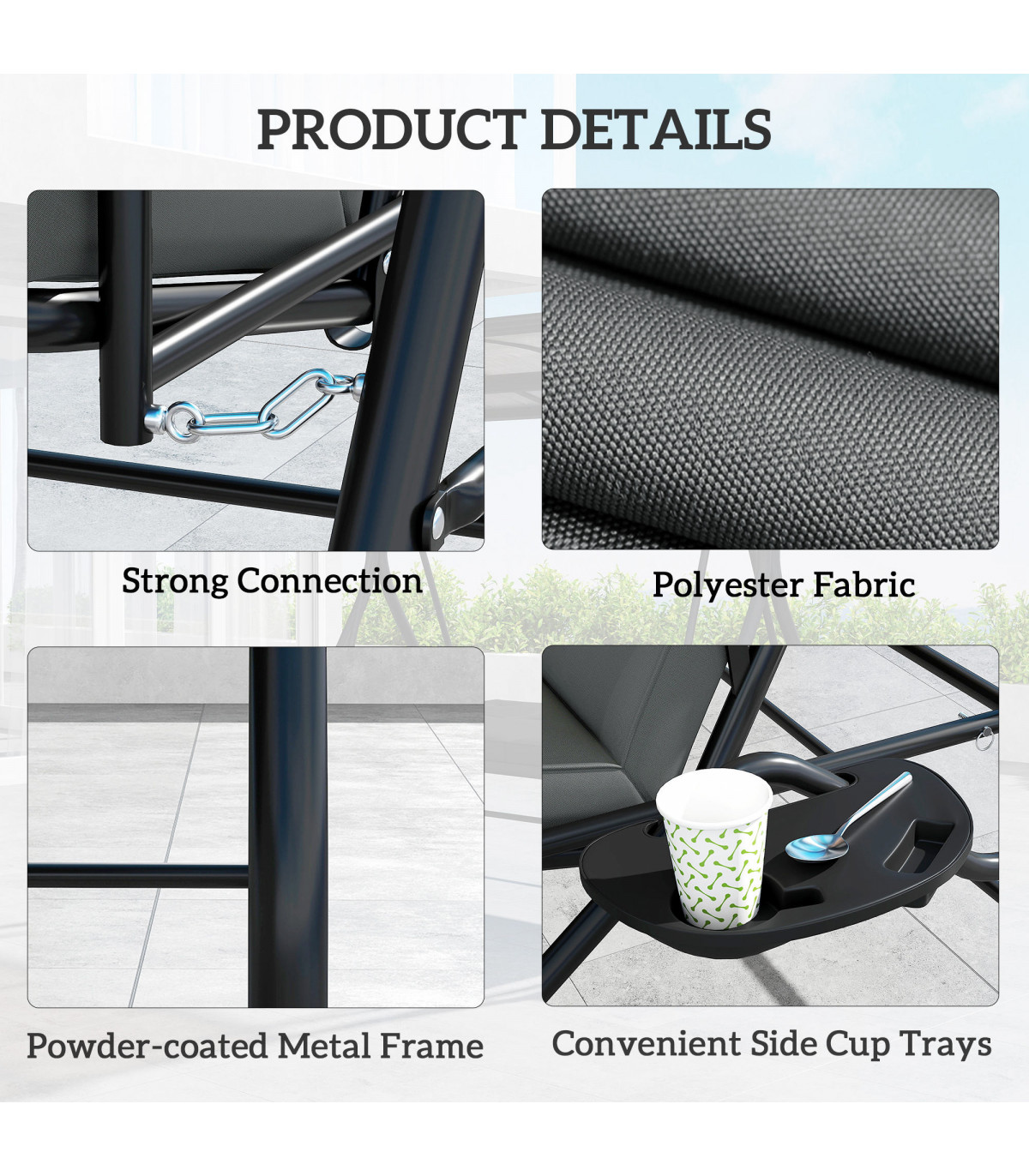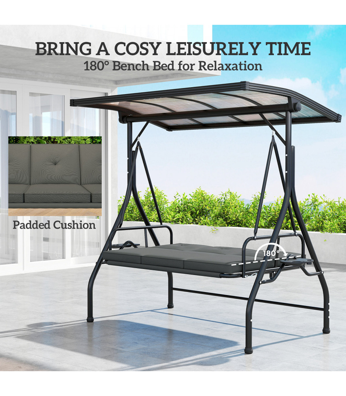 ● Powder-coated metal frame, waterproof and snow-resistant for durability