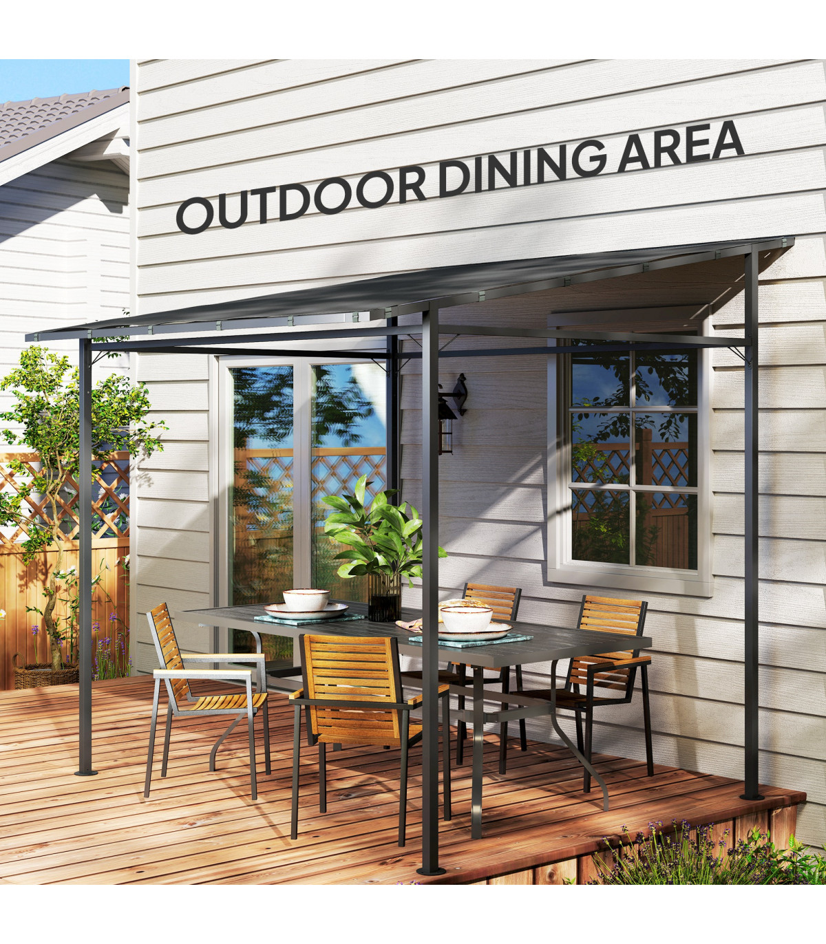 Transform your garden with the Outsunny Pergola Gazebo! Crafted with 180g/㎡ fabric featuring a PA coating, it resists fading and provides UPF30+ sun protection. This metal pergola, designed as a lean-to gazebo, fixes easily to any wall, blending indoor and outdoor spaces effortlessly. Whether you fancy a garden grill barrier or a cosy outdoor eating area, this pergola kit has you covered.