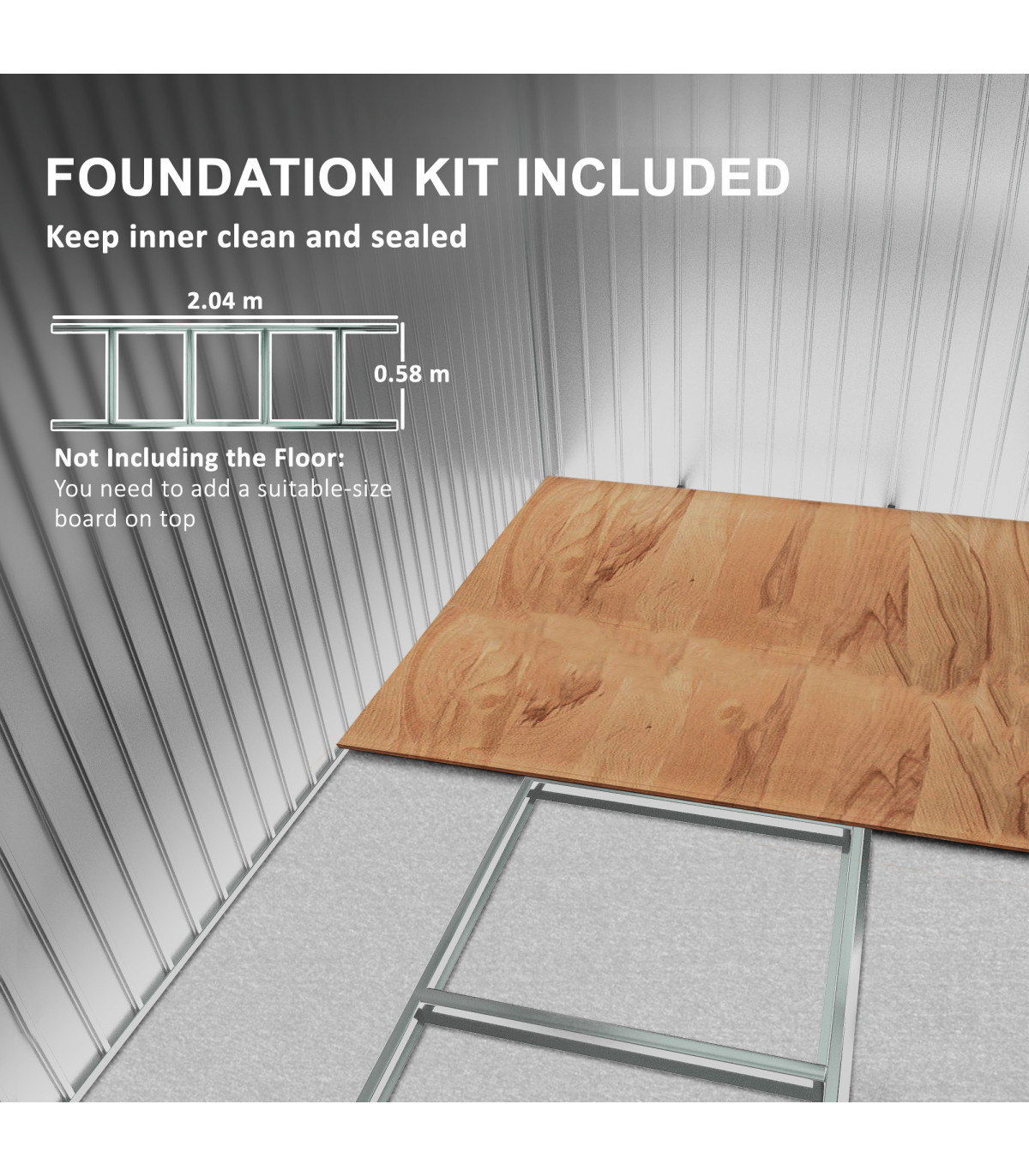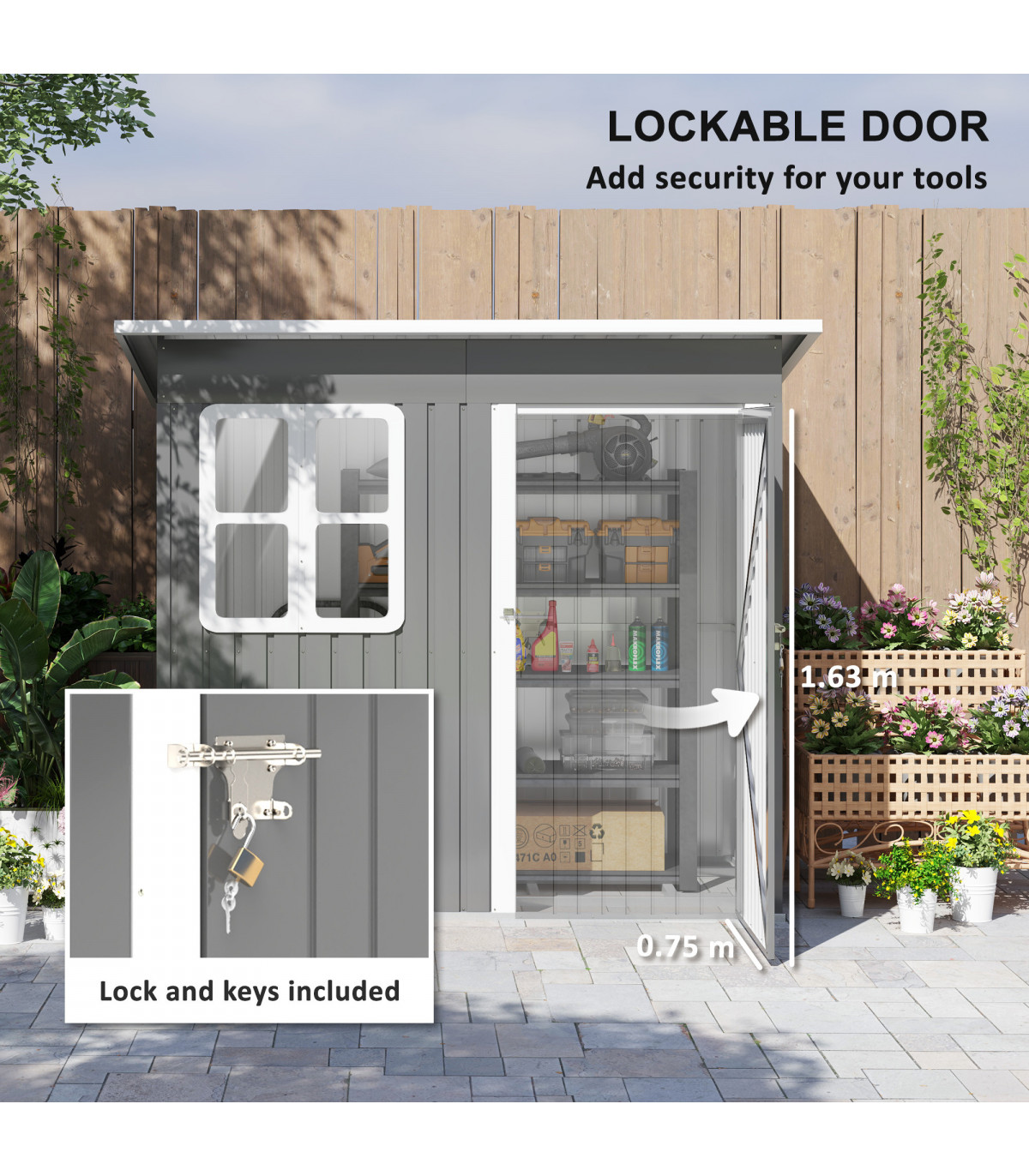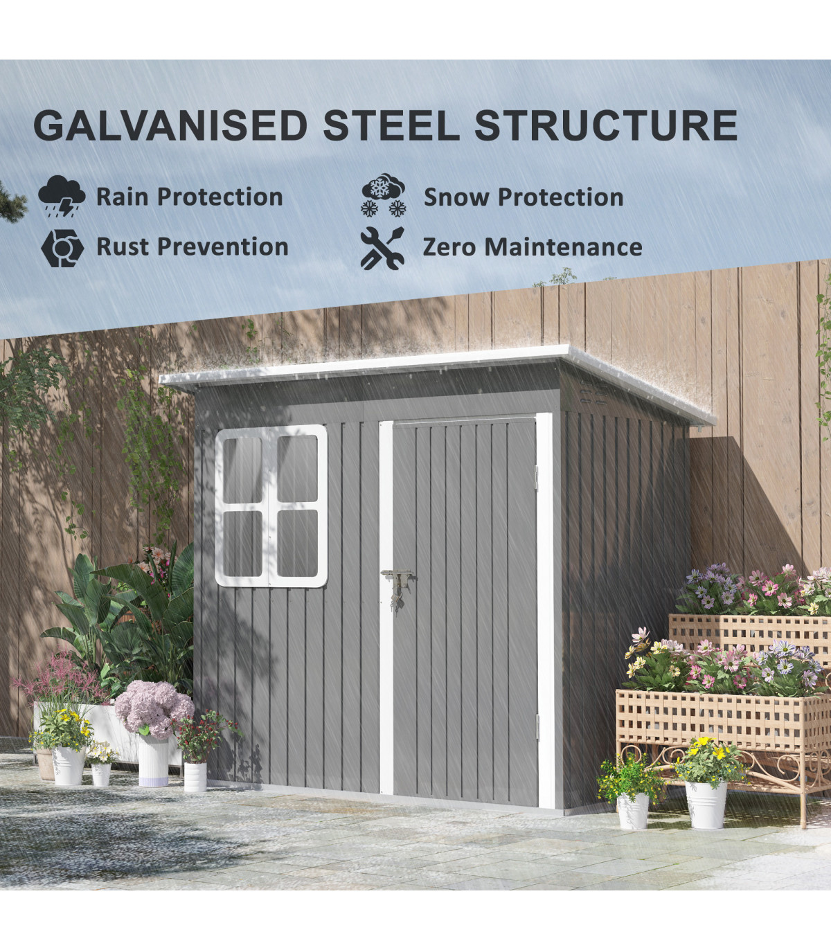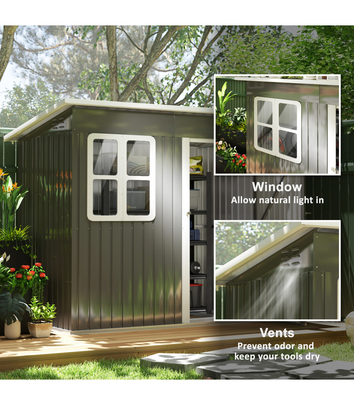An essential for every outdoor space, in sturdy form with this Outsunny 7 x 4 ft shed. Made from galvanised steel this is a tough piece and will protect all contents inside properly. With a large window, plenty of light seeps through, so you can see inside easily in the day. The 75cm wide door means easy access, complete with an included lock to secure in place.