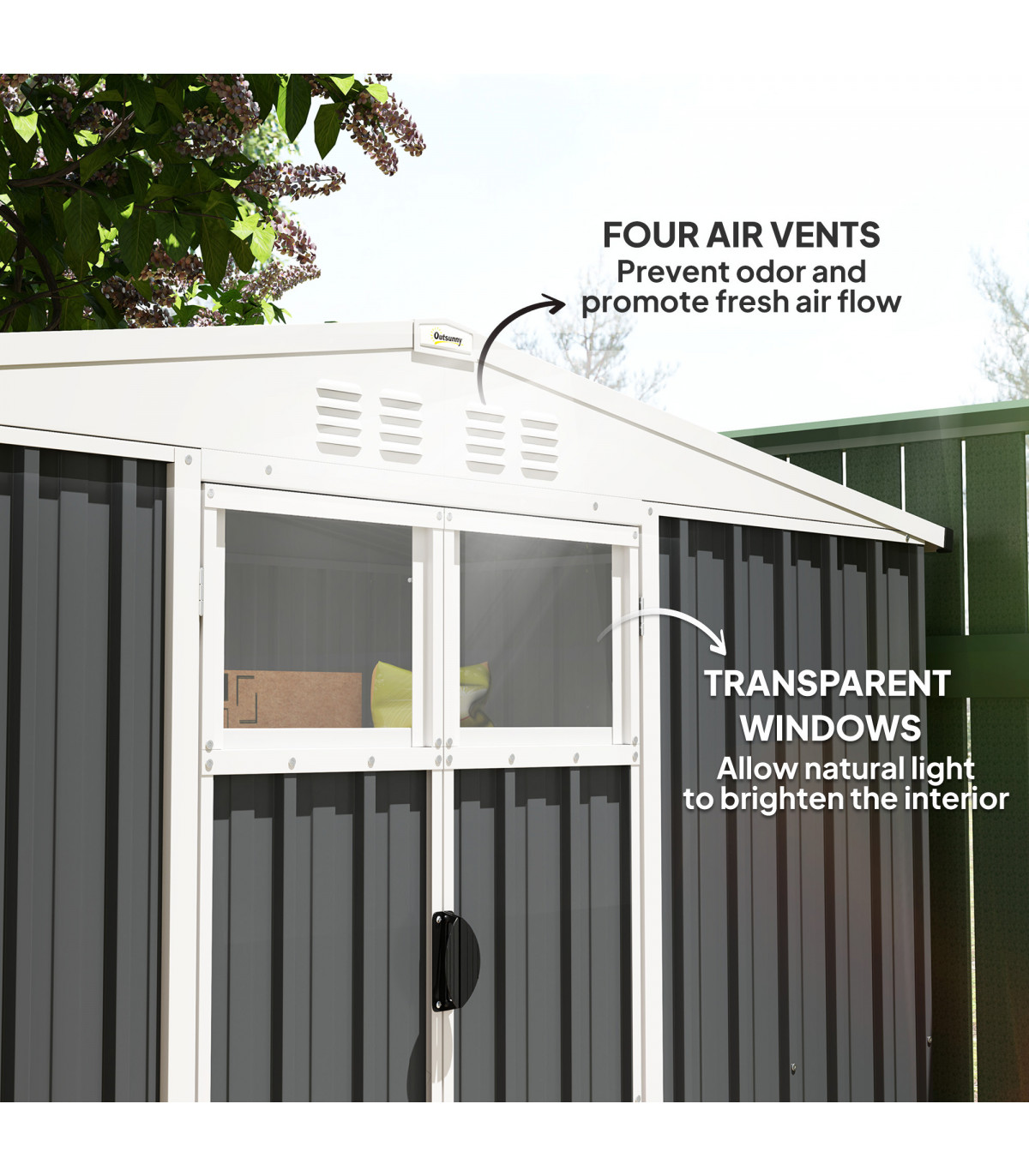 ● Transparent windows allow natural light inside