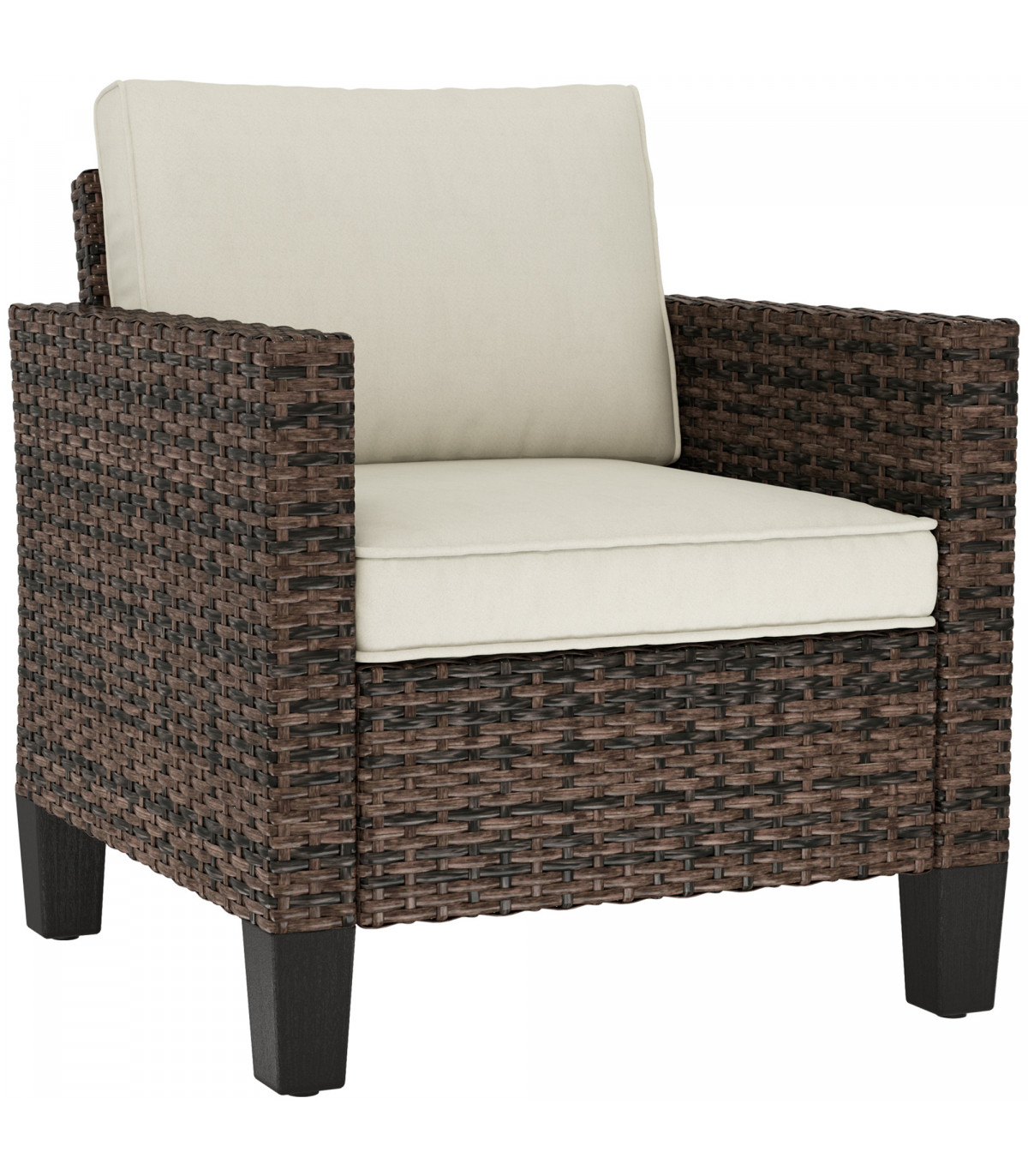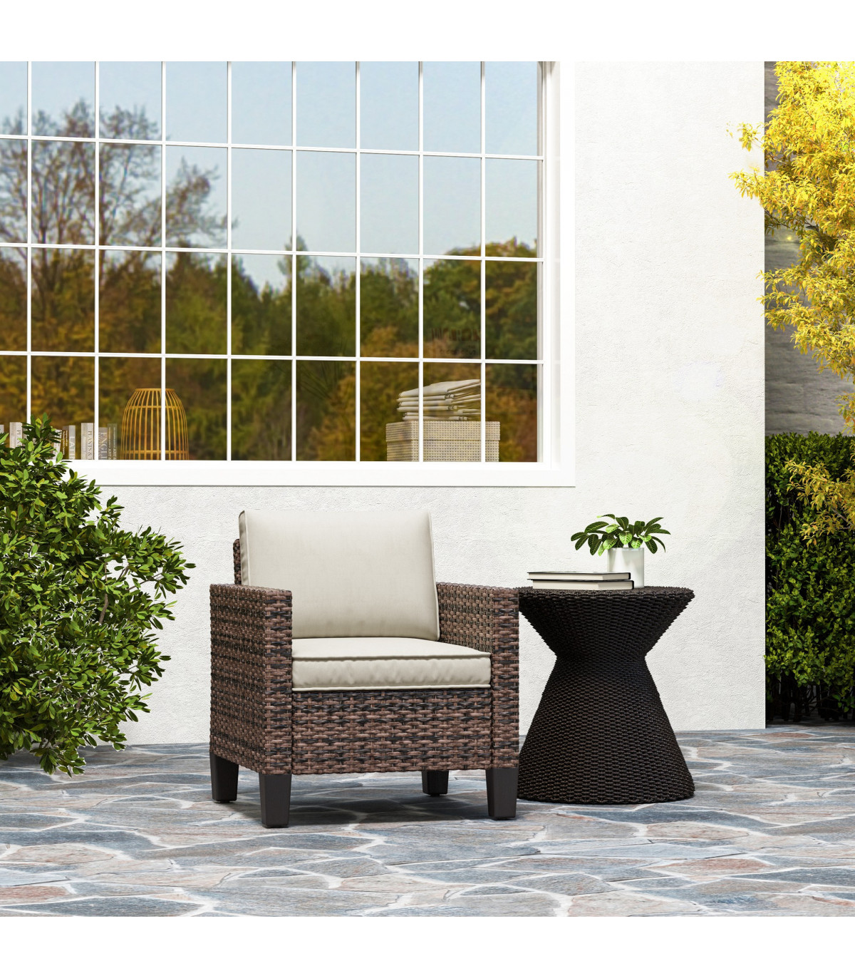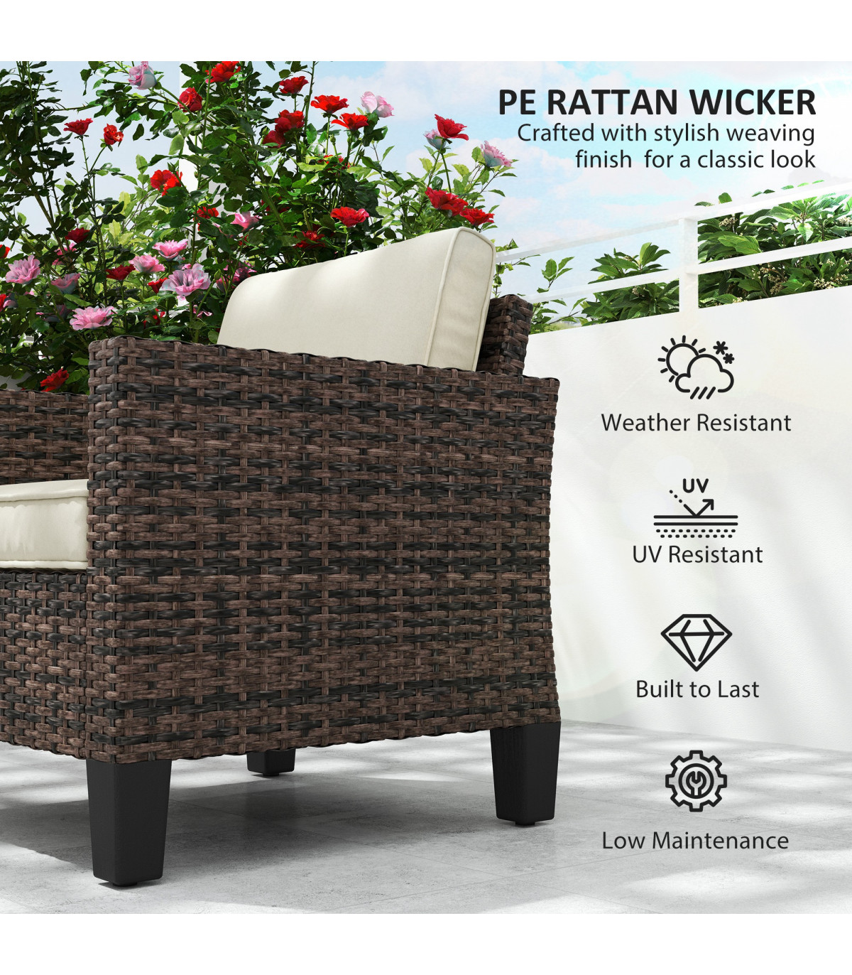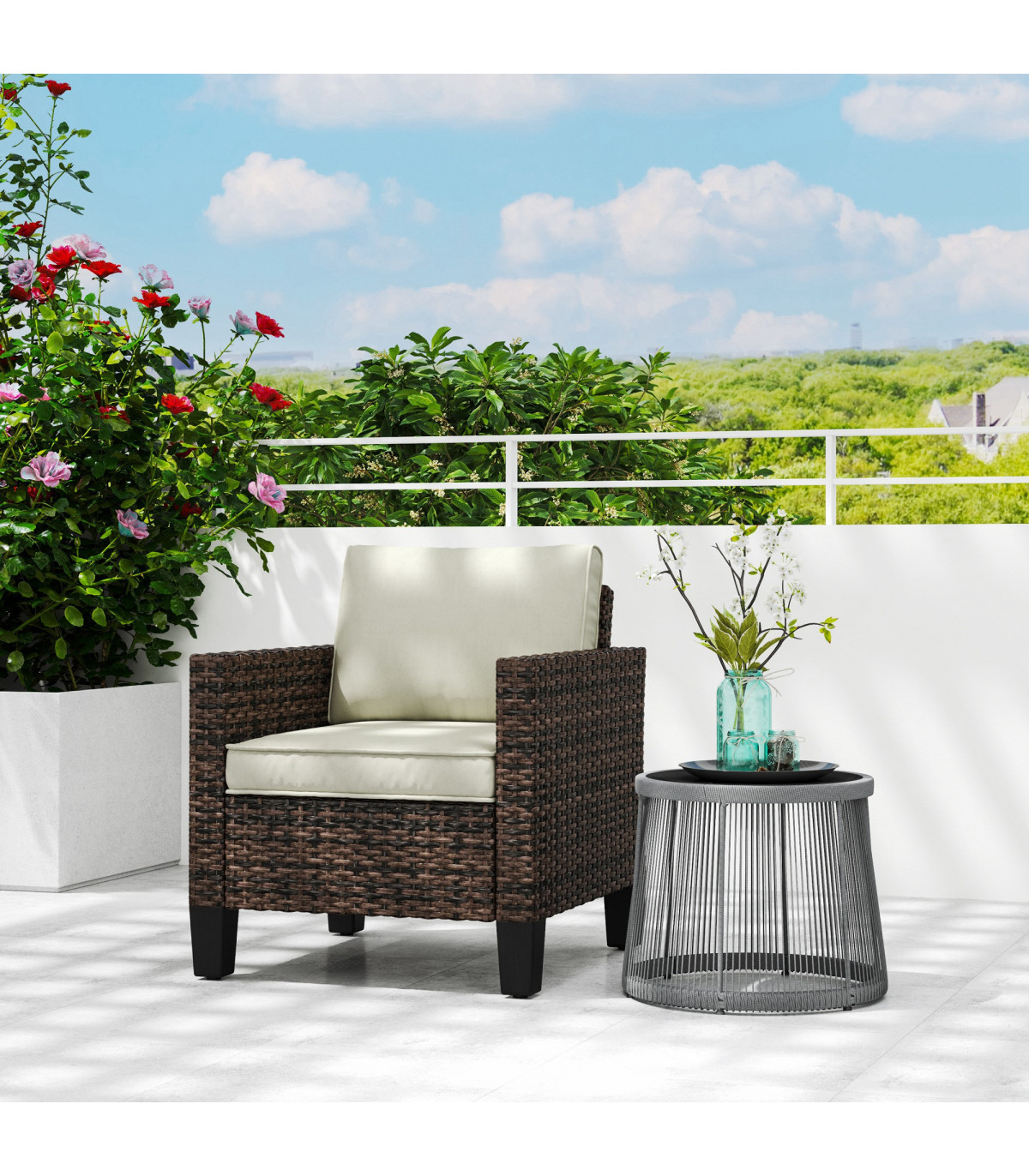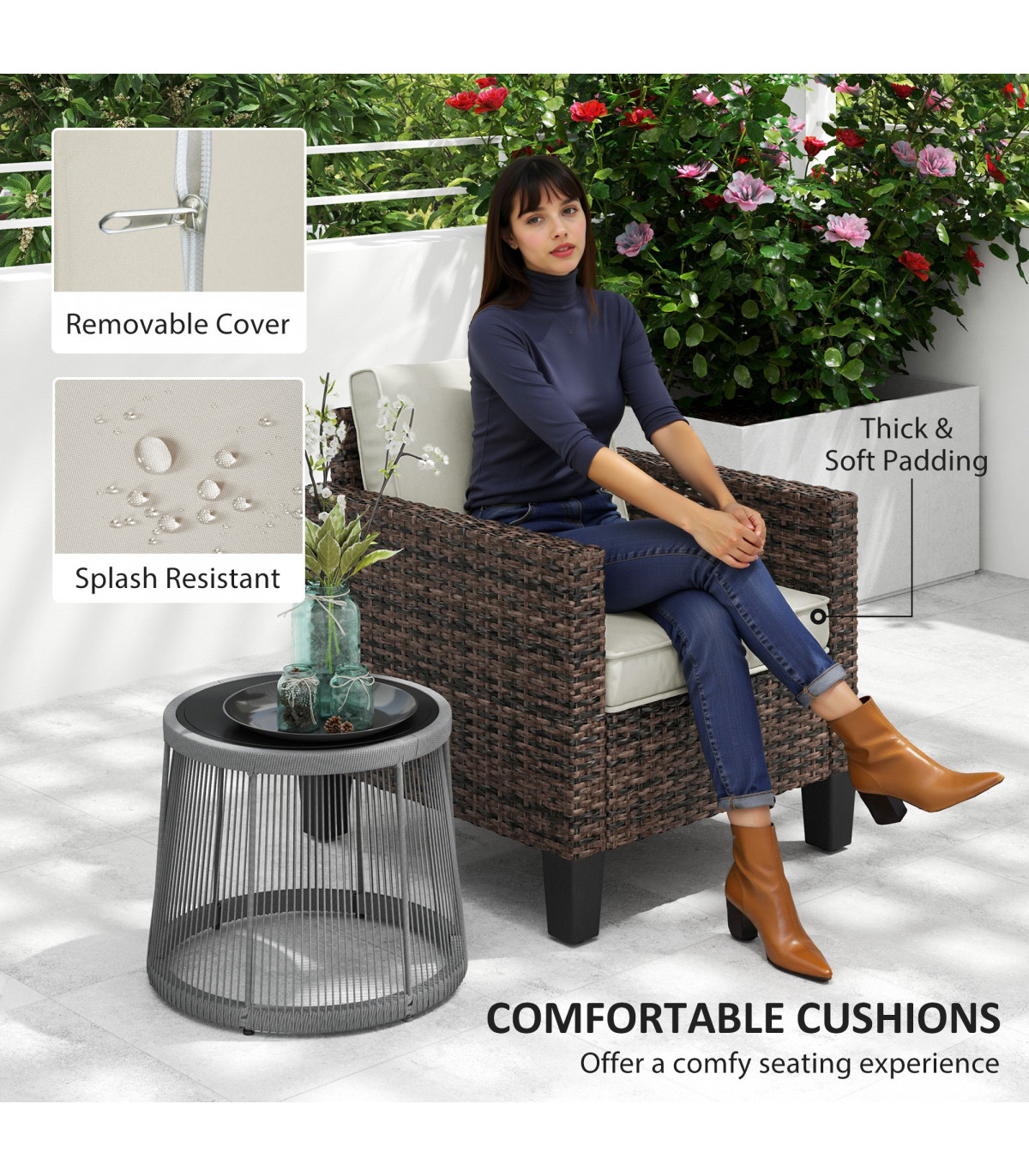 Outsunny Single Rattan Chair, Garden Armchair with Cushions, Brown