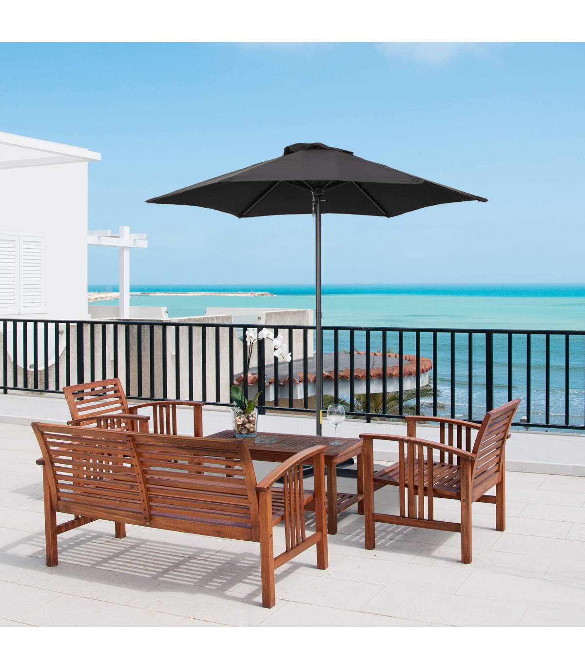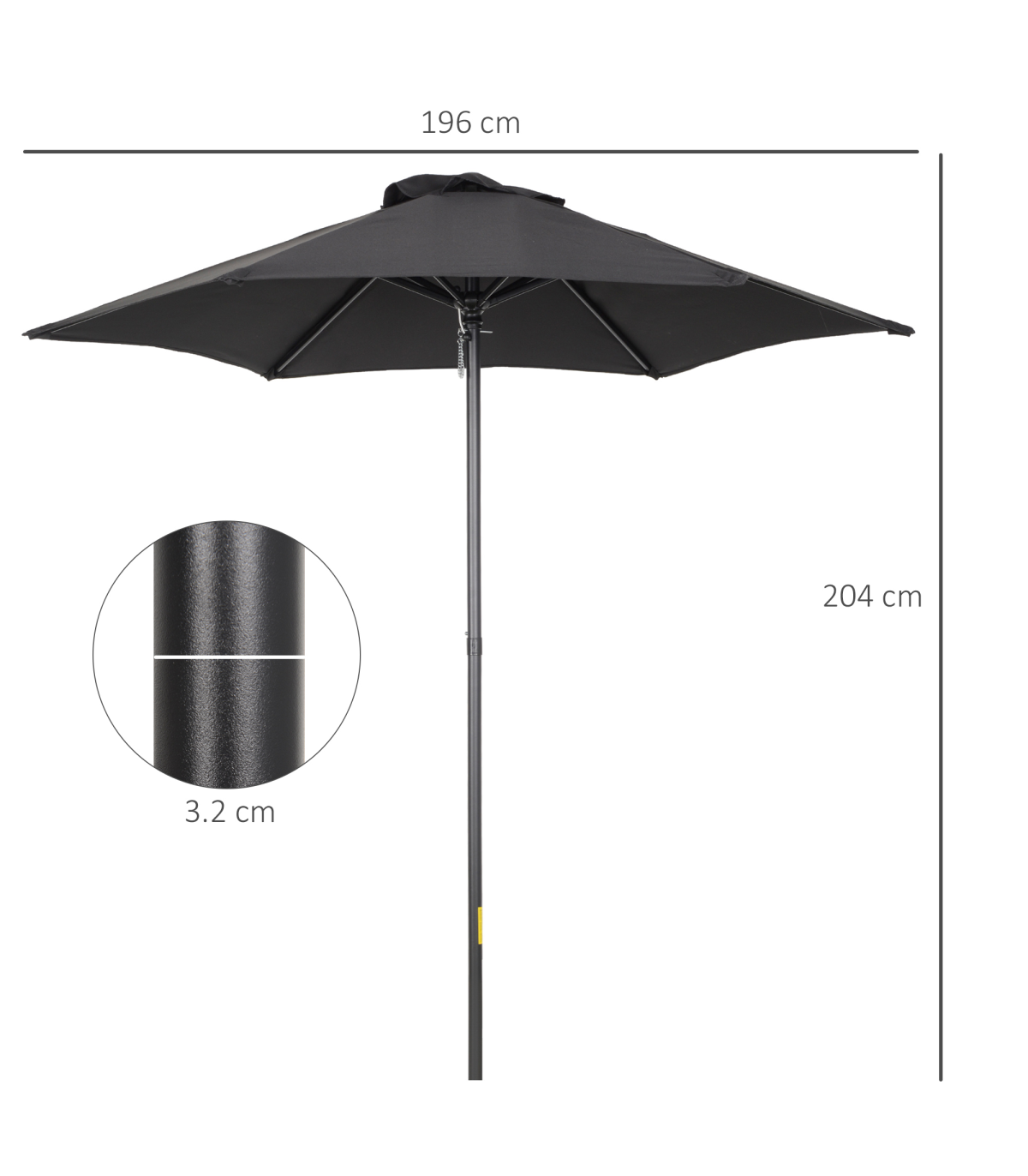 1.96m Parasol Patio Umbrella, Black