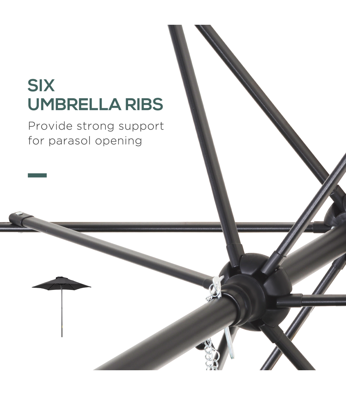The Outsunny umbrella for garden table is a stylish, classic design. It brings beauty into your garden and outdoors whilst creating protective shade. The aluminium frame ensures a strong core, with six ribs connected for extra support against the wind. The push-button operation means the sun parasol is easy to open - you'll be shaded so quickly into place. It's just as easy to close down too. Pair with one of our Outsunny parasol bases for the complete package this summer and beyond.