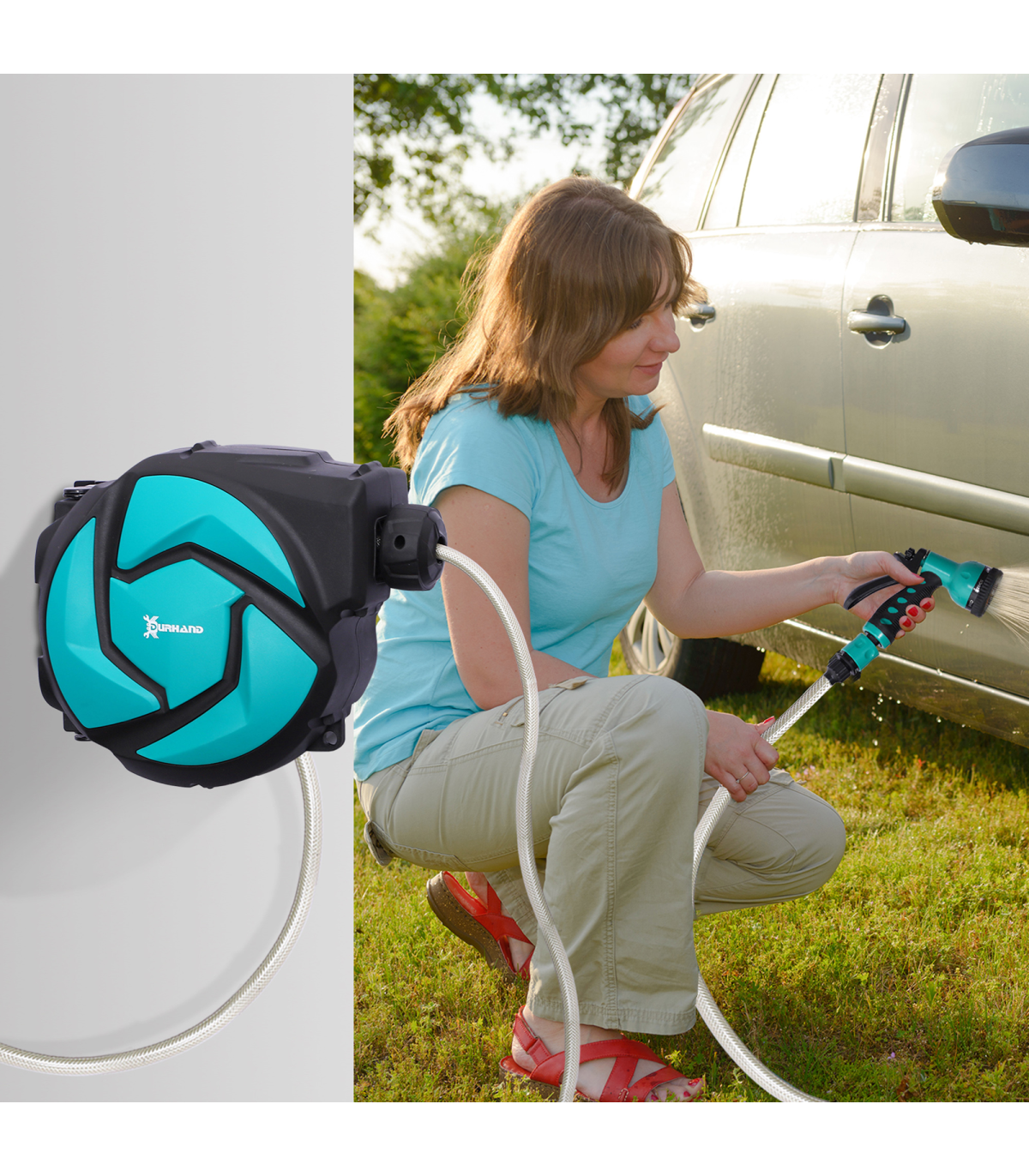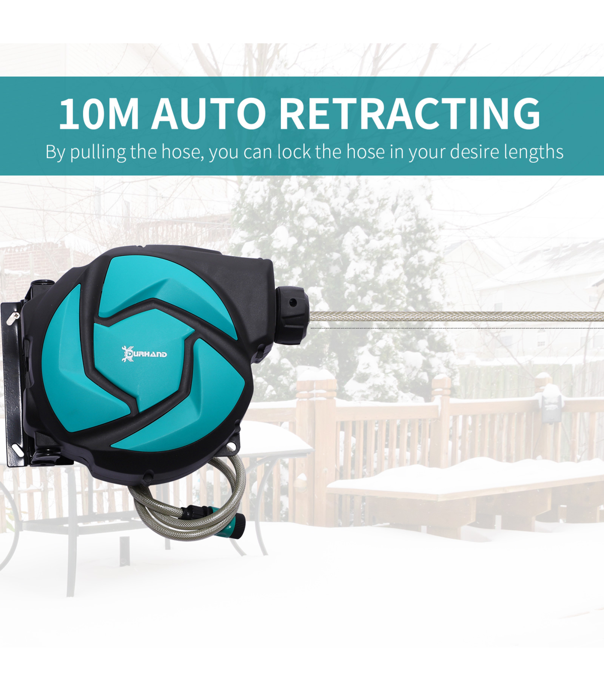 10M Water Hose Reel Compact Garden Car Locking Auto Retract Spray Durhand