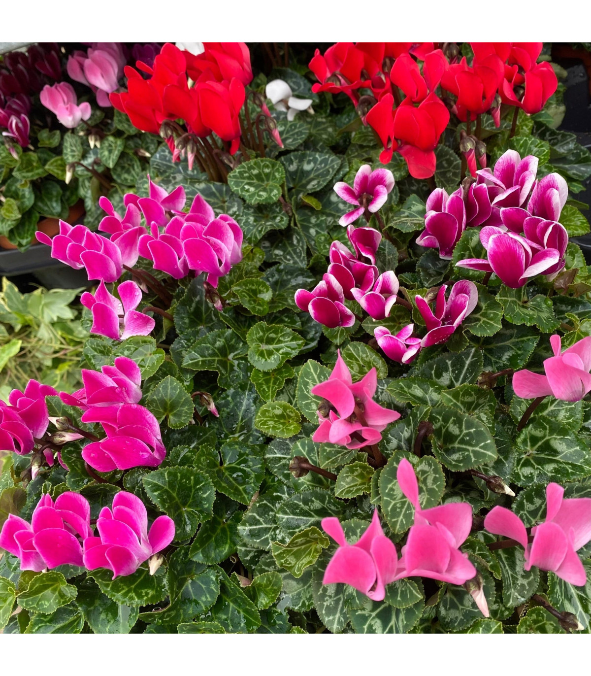 Beautiful little Cyclamen which are perfect for the windowsill indoors but can also survive outdoors too. The brightly coloured blooms are perfect for in baskets and containers, beds and borders.