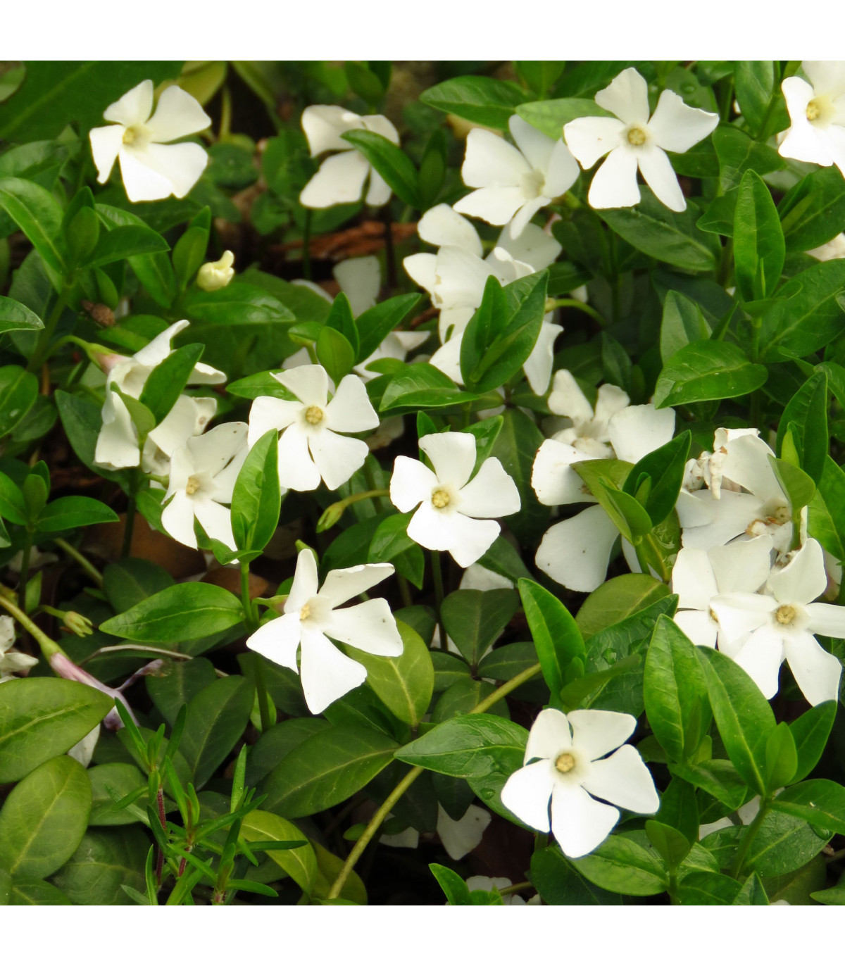 This beautiful Periwinkle produces pure white, star shaped flowers above dark green foliage from March - September.