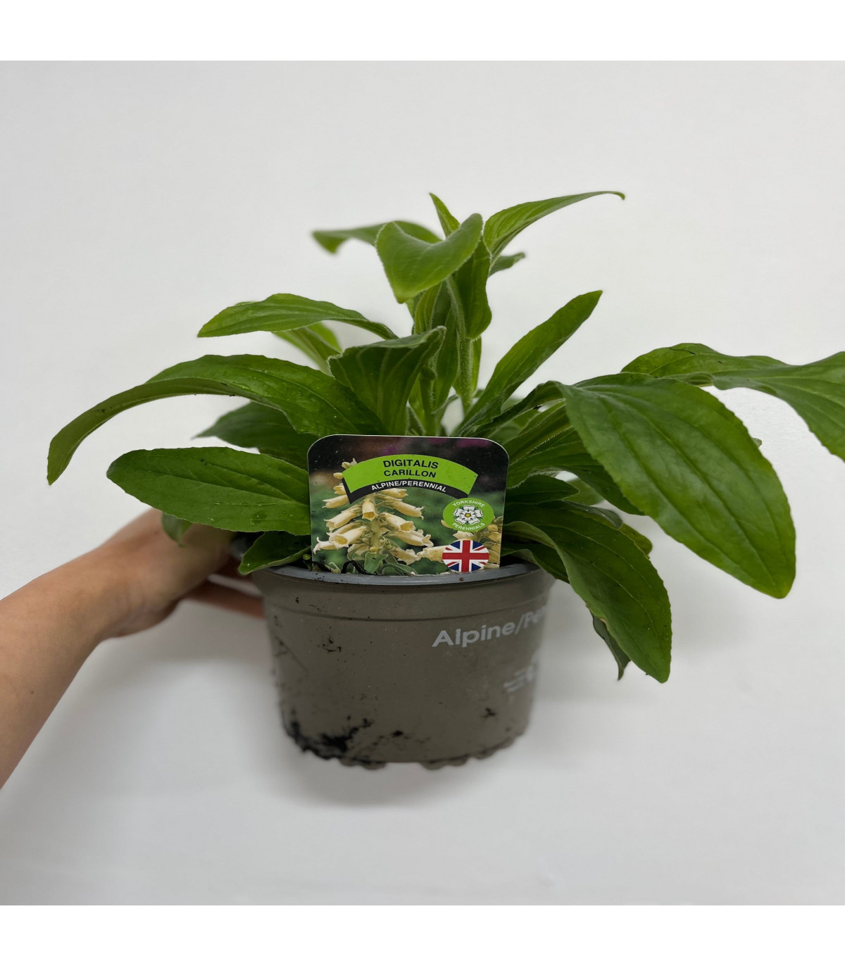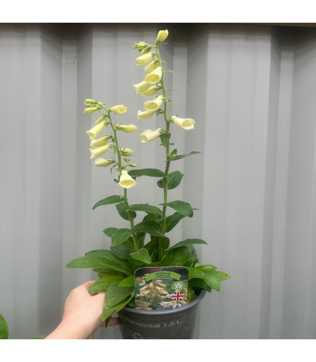 Digitalis grandiflora 'Carillon' is a graceful perennial that produces tall spikes of creamy yellow, tubular flowers with subtle brown markings on the inside, creating a soft and elegant display. The blooms rise above a mound of large, textured green foliage, adding a contrasting backdrop to the delicate flowers. Flowering in early to mid-summer, 'Carillon' thrives in partial to full sun and well-drained soil, making it an excellent choice for borders, woodland gardens, or cottage gardens. This variety attracts pollinators and is known for its tolerance to a range of soil types. With its vertical growth and lovely colouration, Digitalis 'Carillon' brings a refined touch to any garden setting.