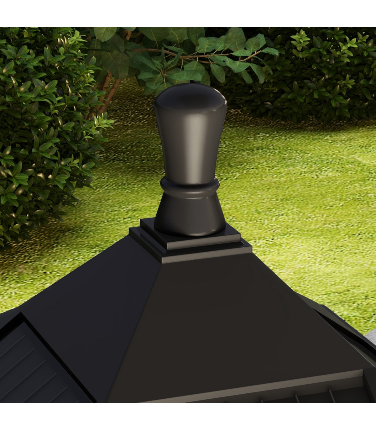 ● Stands on hard ground or easily inserts into the soil with its sharp-pointed anchor