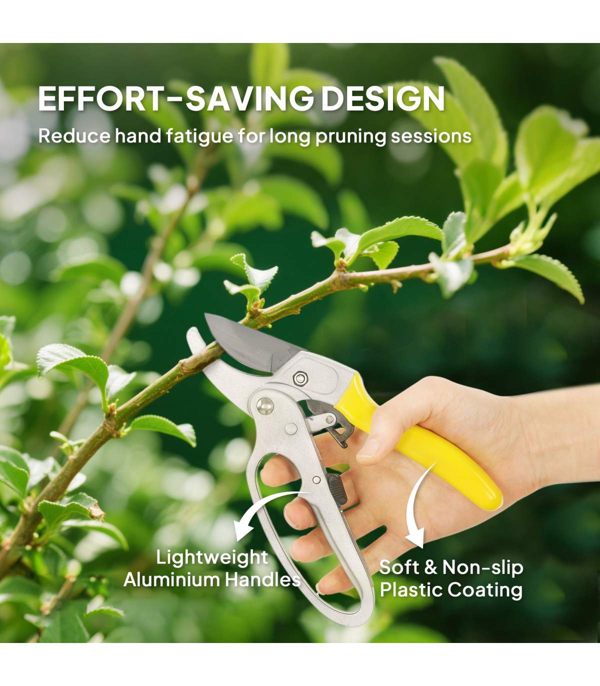 - Precise pruning of the ratchet secateurs for clean, effortless cuts
