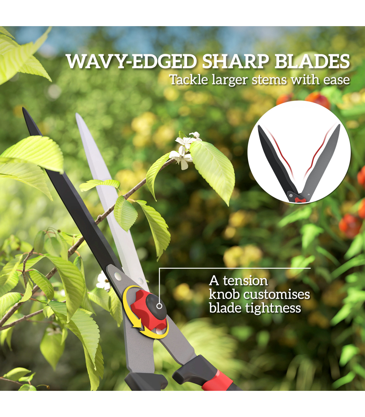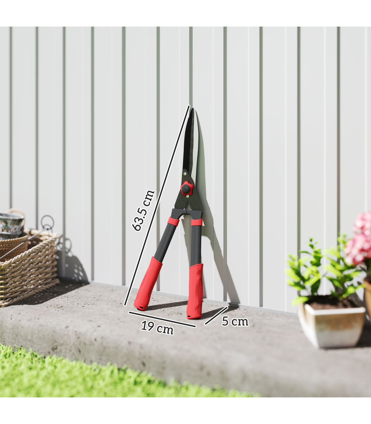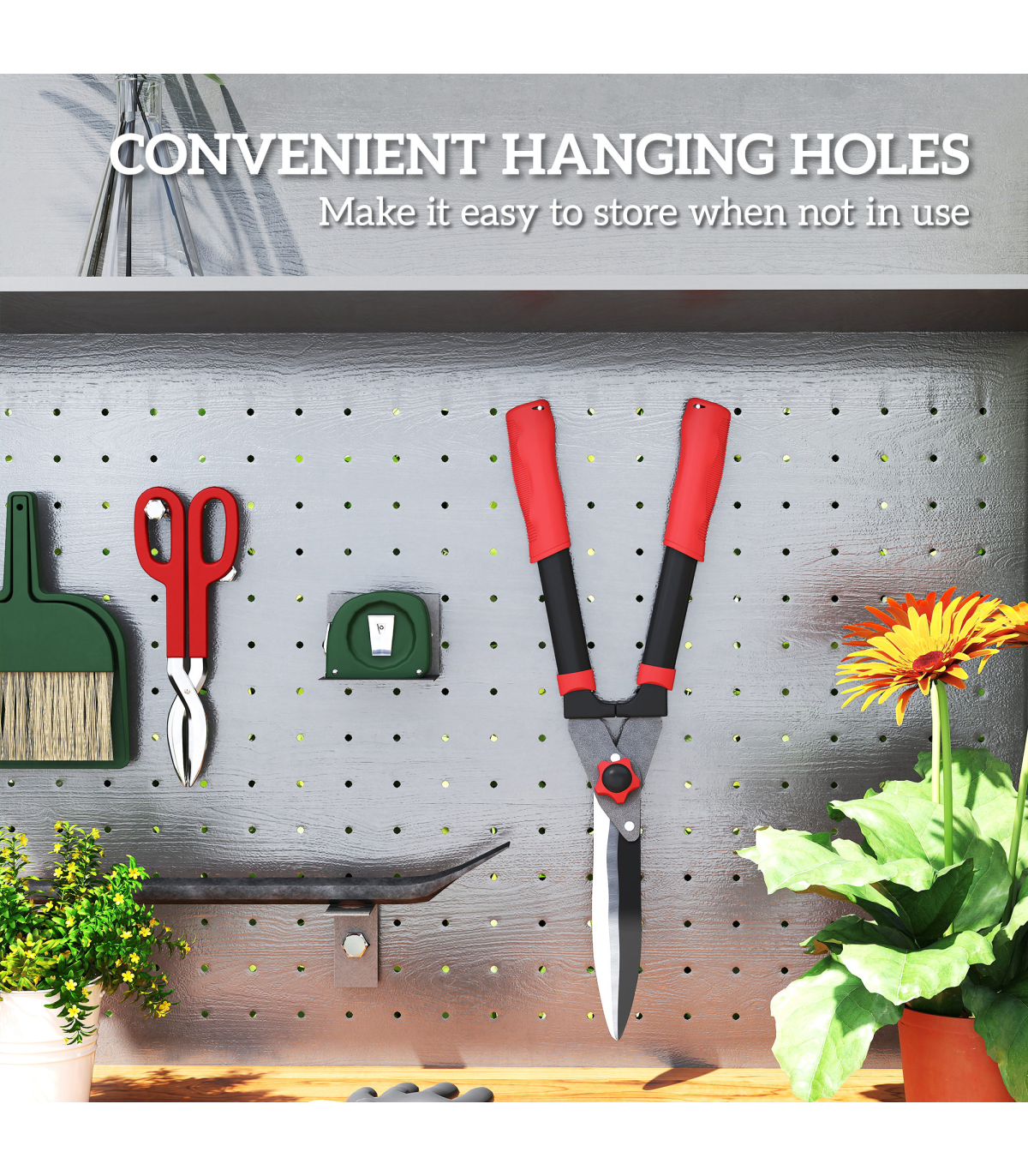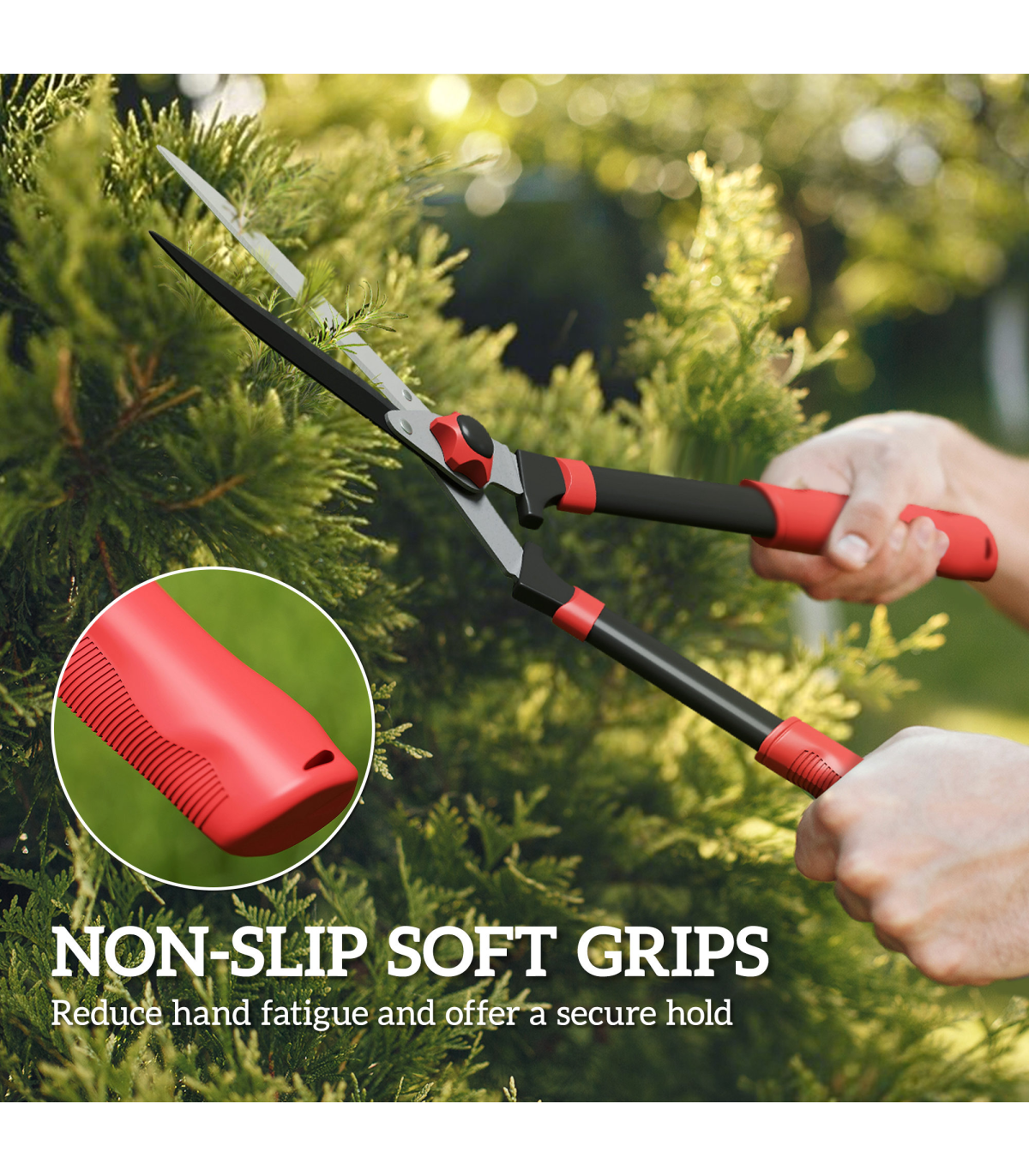 - Soft plastic grips of the hedge clippers enhance comfort and control