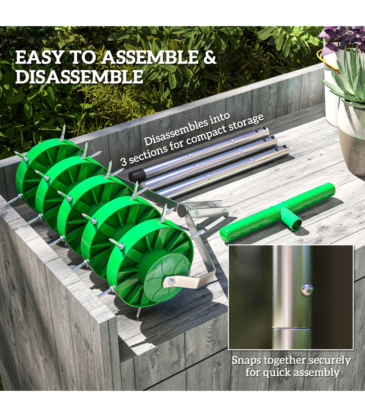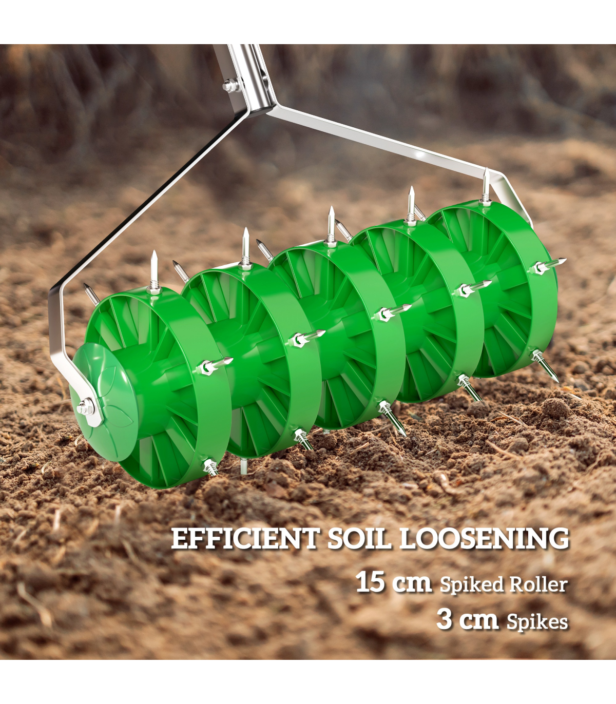 - 150 mm spiked roller swiftly aerates soil for healthier gardens
