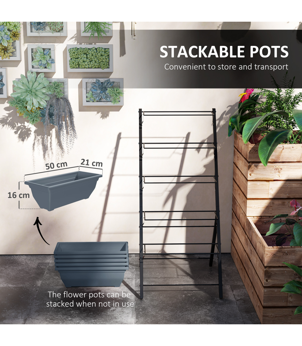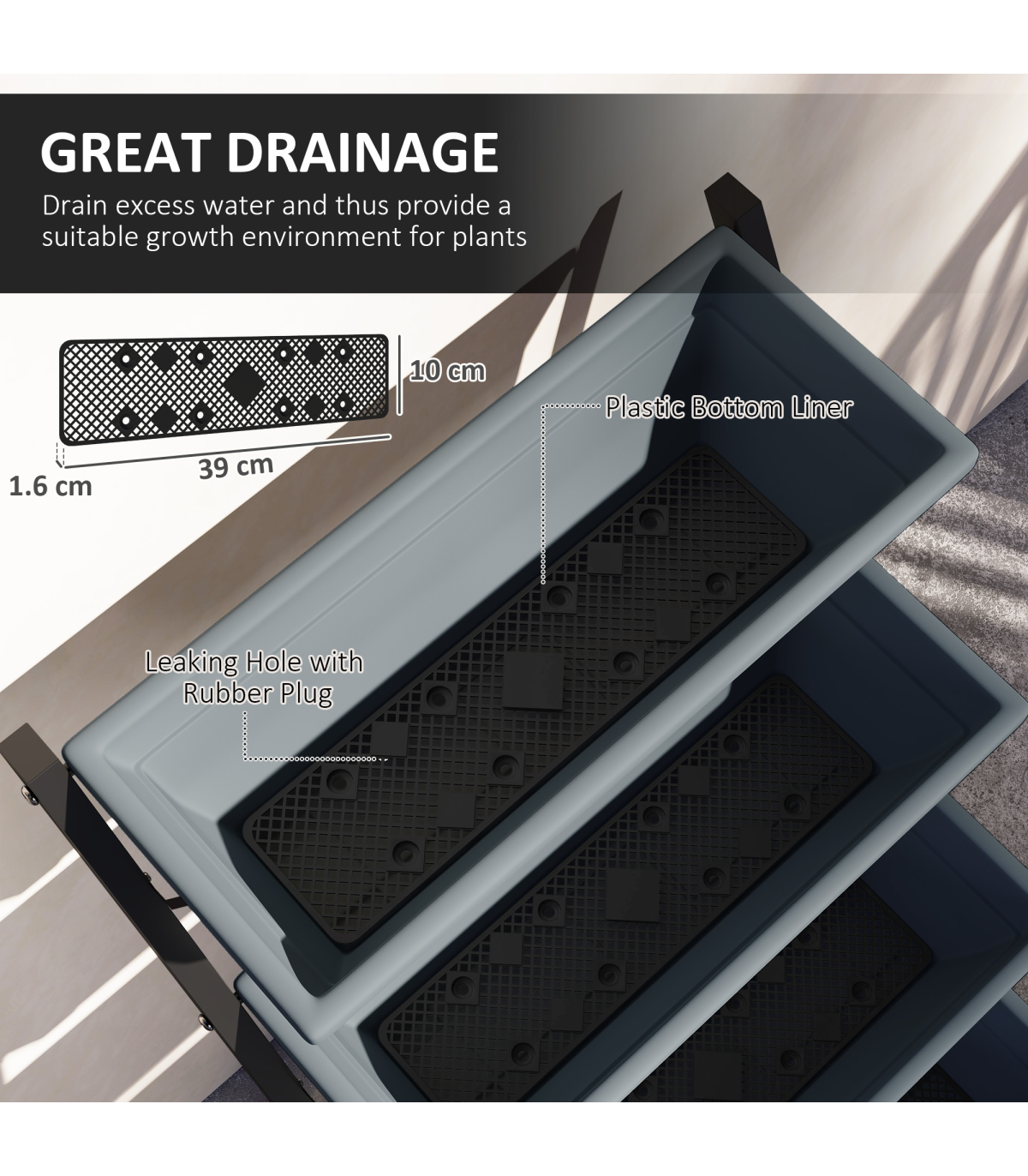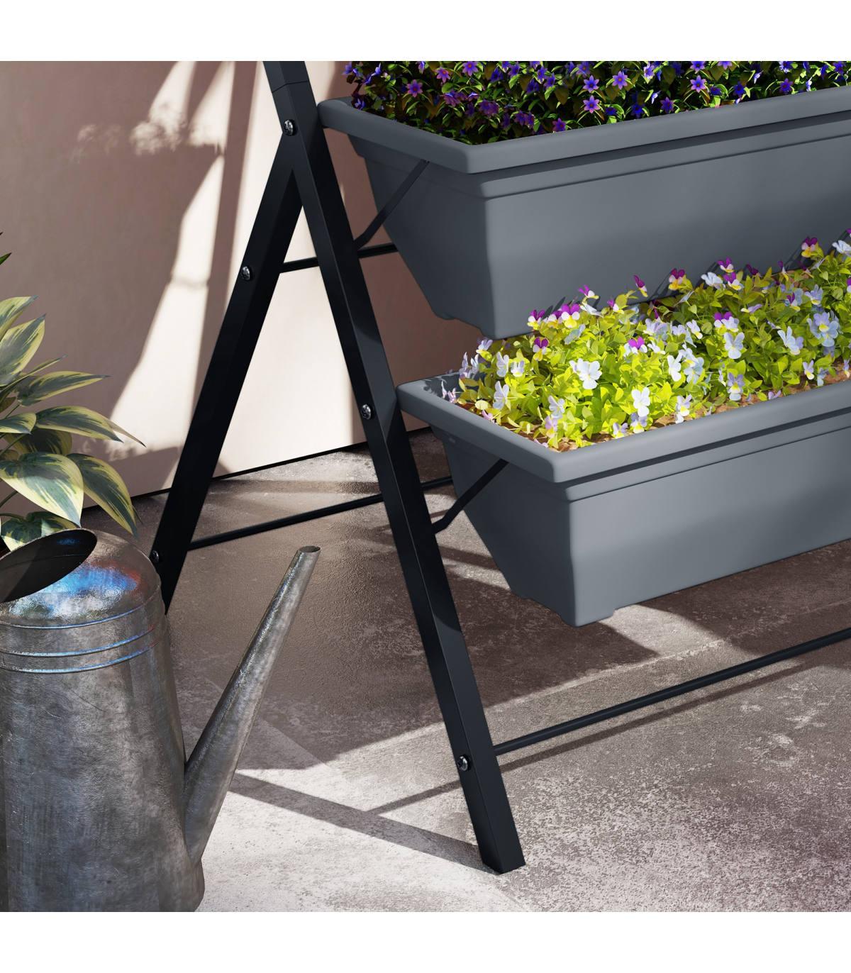 ● Powder-coated steel frame and plastic pots resist outdoor weather conditions