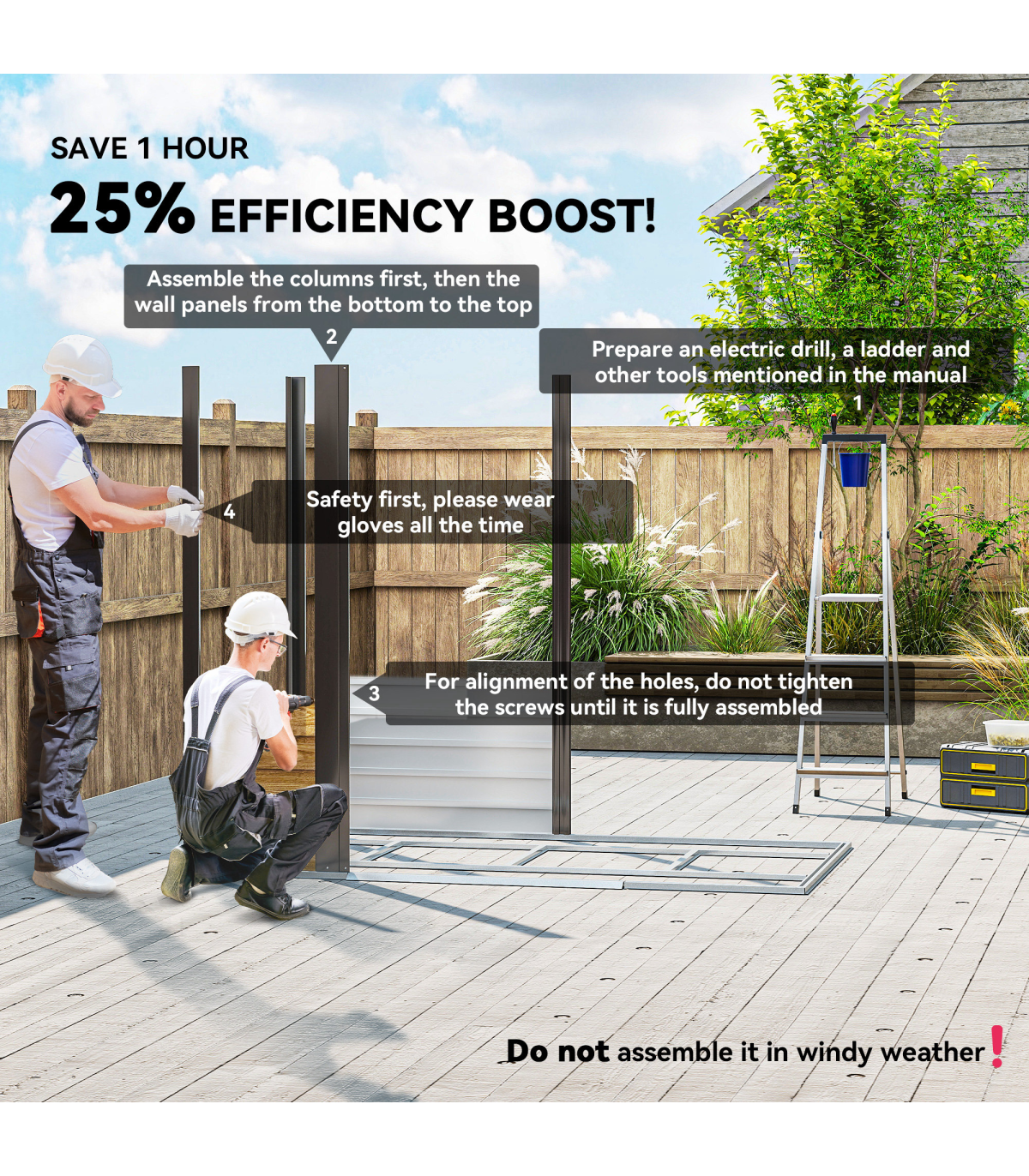 ● About Assembly: 2-3 people takes approximately 3 hours. Always wear gloves for your safety