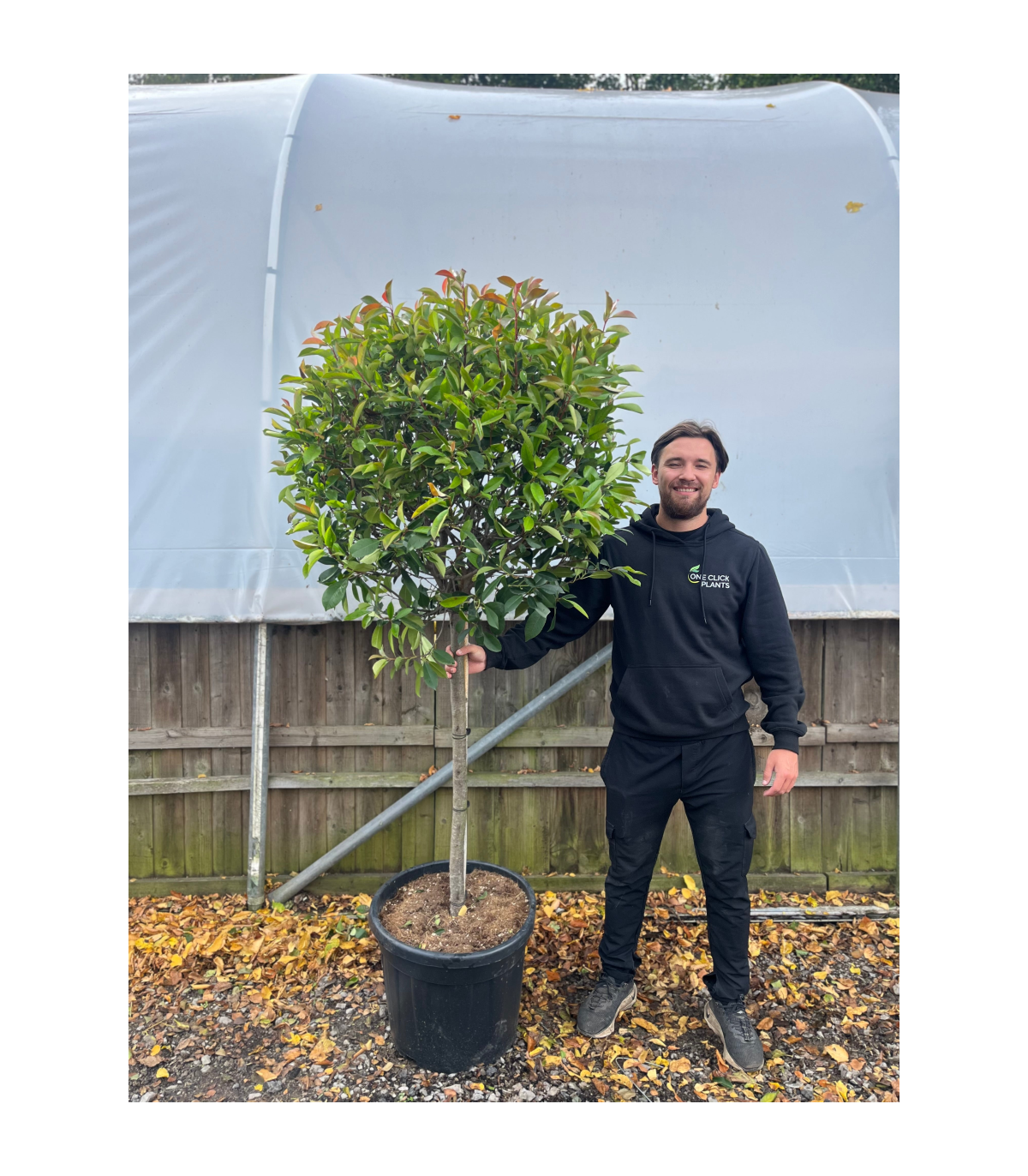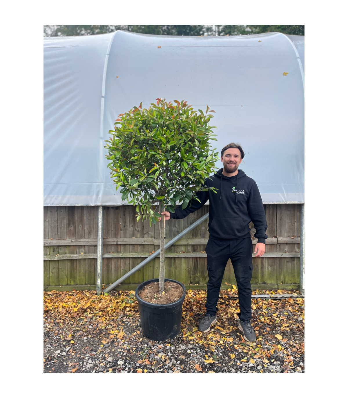 Our ¼ Standard Photinia ‘Red Robin’ Tree is a compact and colourful choice for adding evergreen structure to the garden. Standing at around 1.7m tall, it features a 100cm clear stem topped with a neat 70cm head of glossy foliage, making it perfect for smaller gardens, patios, and terraces.