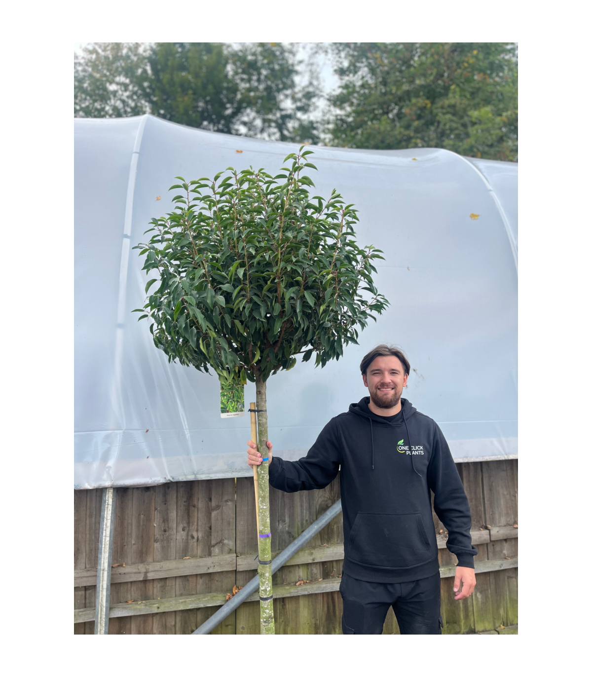 The term “½ Standard” refers to the height of the clear stem. A ½ Standard tree has a shorter trunk with a lower crown compared to a full Standard tree, which usually has a 1.8m clear stem and a higher head. This makes ½ Standards ideal for patios, terraces, and smaller gardens, or for creating privacy above a fence without losing too much greenery at eye level.