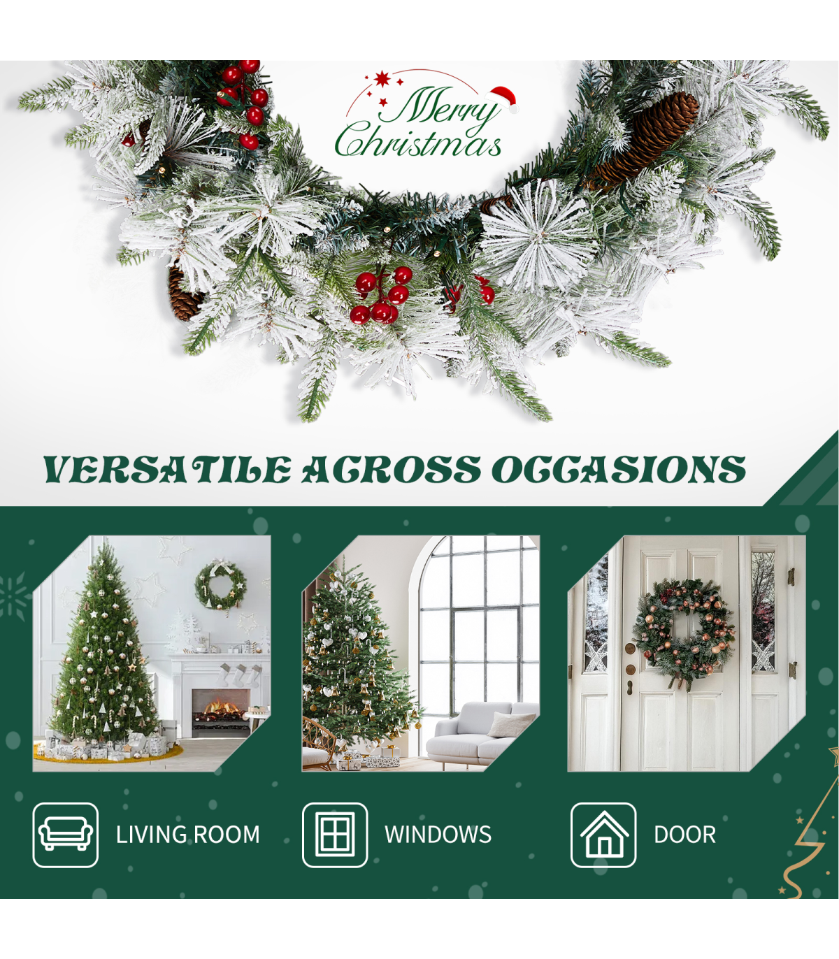5. Built to Last: Crafted from premium, flame-retardant PVC and PE materials, this wreath is designed to withstand the test of time, maintaining its vibrant, fresh appearance year after year.