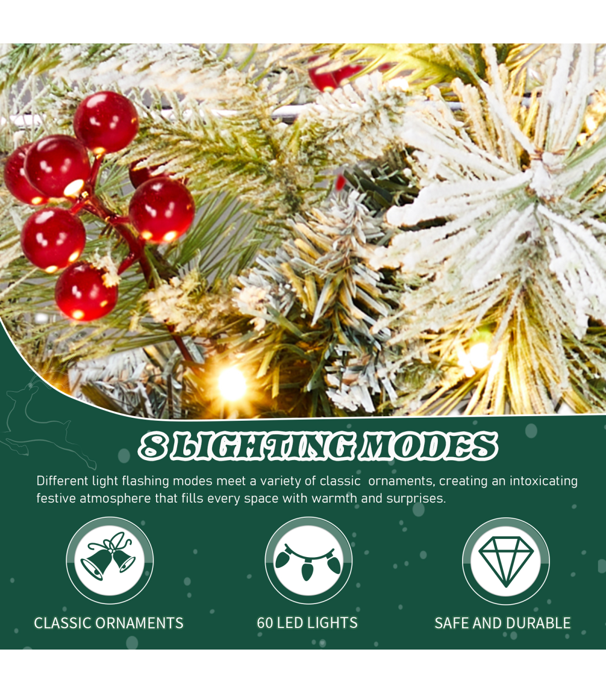 3. Warm Lighting with 8 Modes: Illuminate your holiday décor with warm white LED lights that offer 8 distinct lighting modes. You can easily customize the ambiance to suit your mood or occasion.