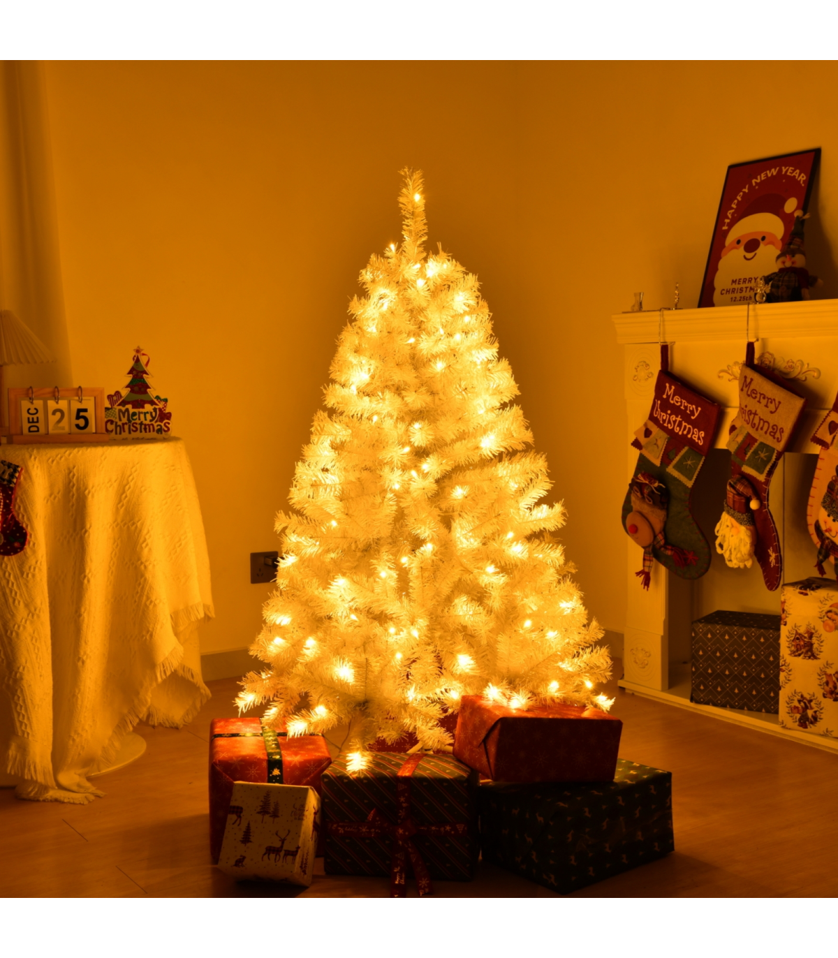 3. Eye Catching Color: The tree's vibrant white color adds a unique and modern twist to traditional holiday decorations. This bold color choice not only creates a stunning visual contrast but also enhances the festive atmosphere, making your ornaments pop against the pristine white background.