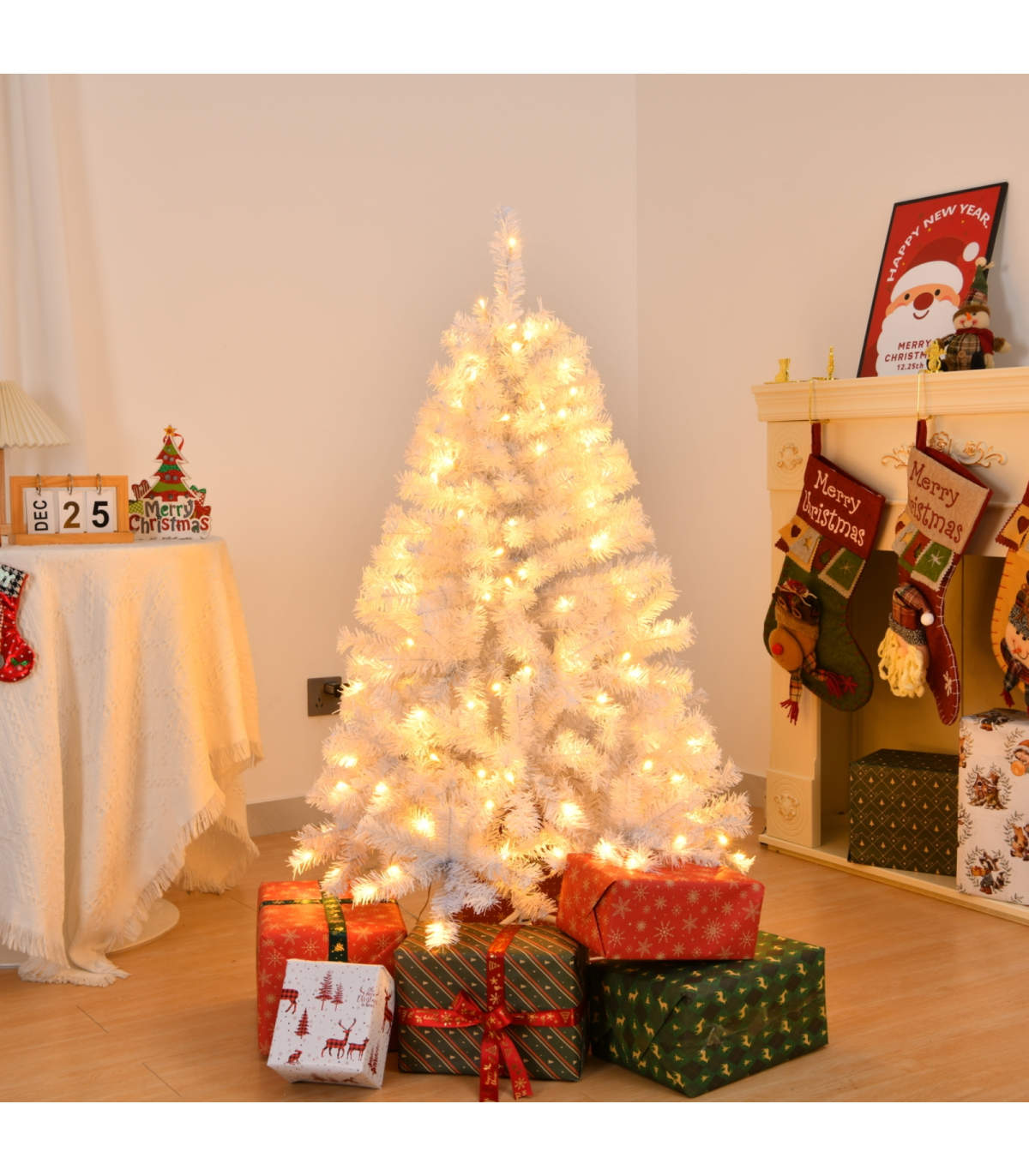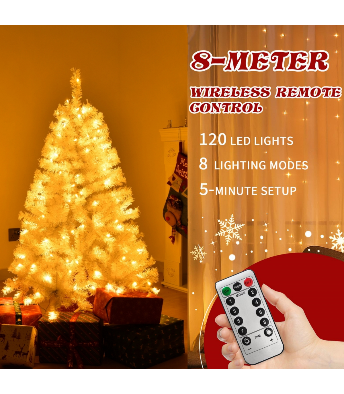 1. Customizable Lighting with Remote: Elevate your holiday ambiance with pre-installed LED lights. Featuring warm white light and 8 dynamic lighting modes, you can easily customize the ambiance to suit your mood or occasion, all with the convenience of the included remote control.