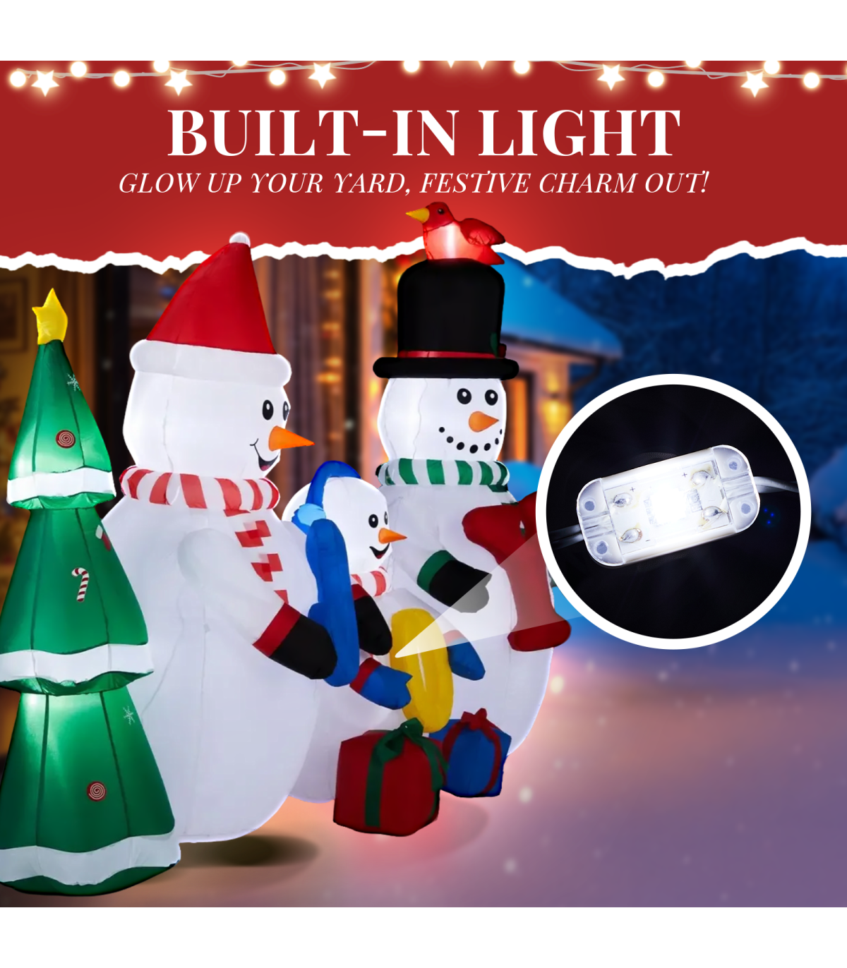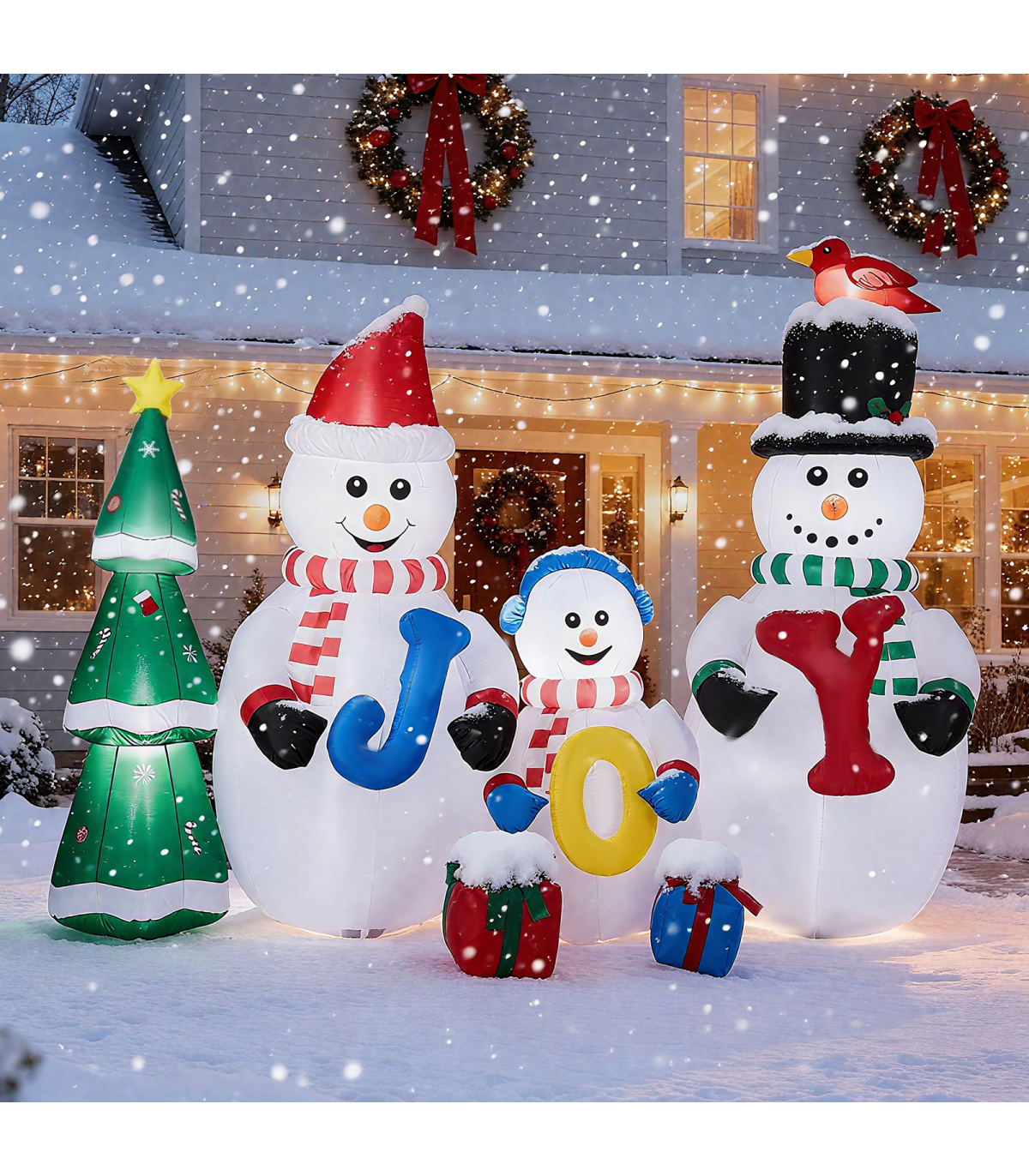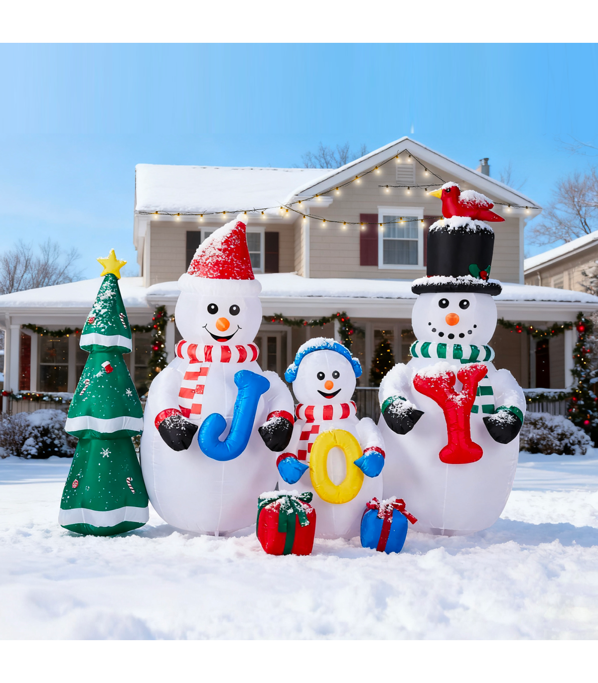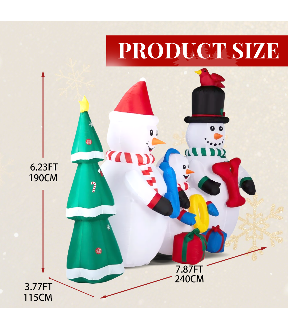 1. Eye-catching Design: Transform your yard into a winter wonderland with this funny blow up decoration. Featuring an adorable snowman family standing next to a Christmas tree and holding JOY in their hands, this inflatable will be the star of your indoor or outdoor display and a fantastic photo backdrop for capturing holiday memories.