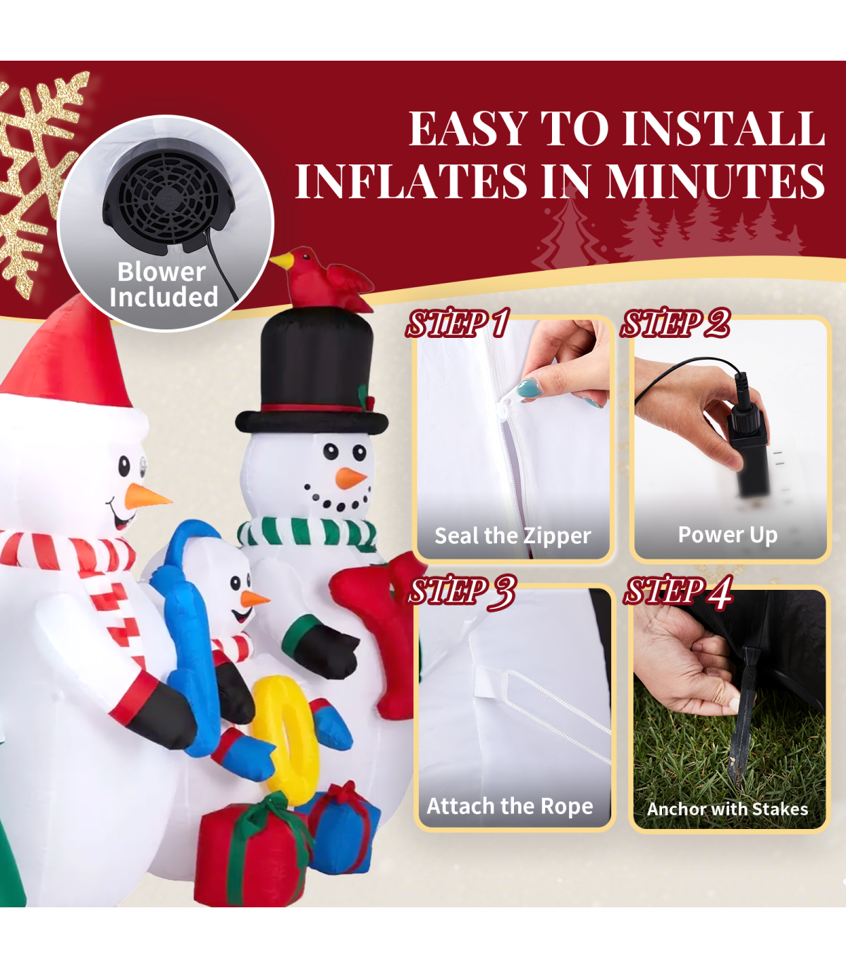 3. Easy Setup and Storage: Simply zip up the inflatable and plug it into any standard power outlet; the built-in blower will automatically inflate the decor in seconds. When the festivities are over, deflate it just as easily, fold it up, and store it compactly until next year. Includes ground stakes and securing ropes to keep it stable.