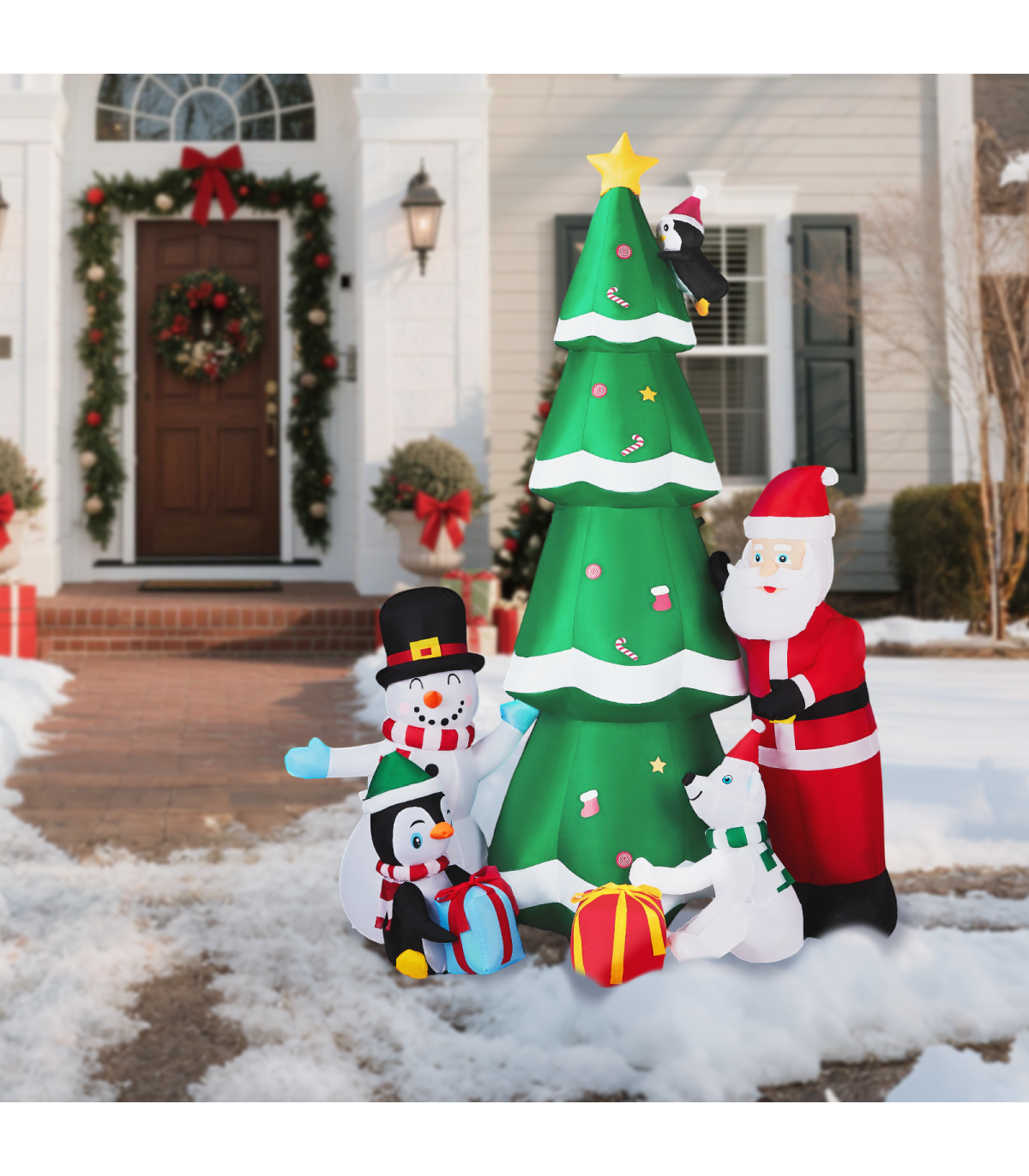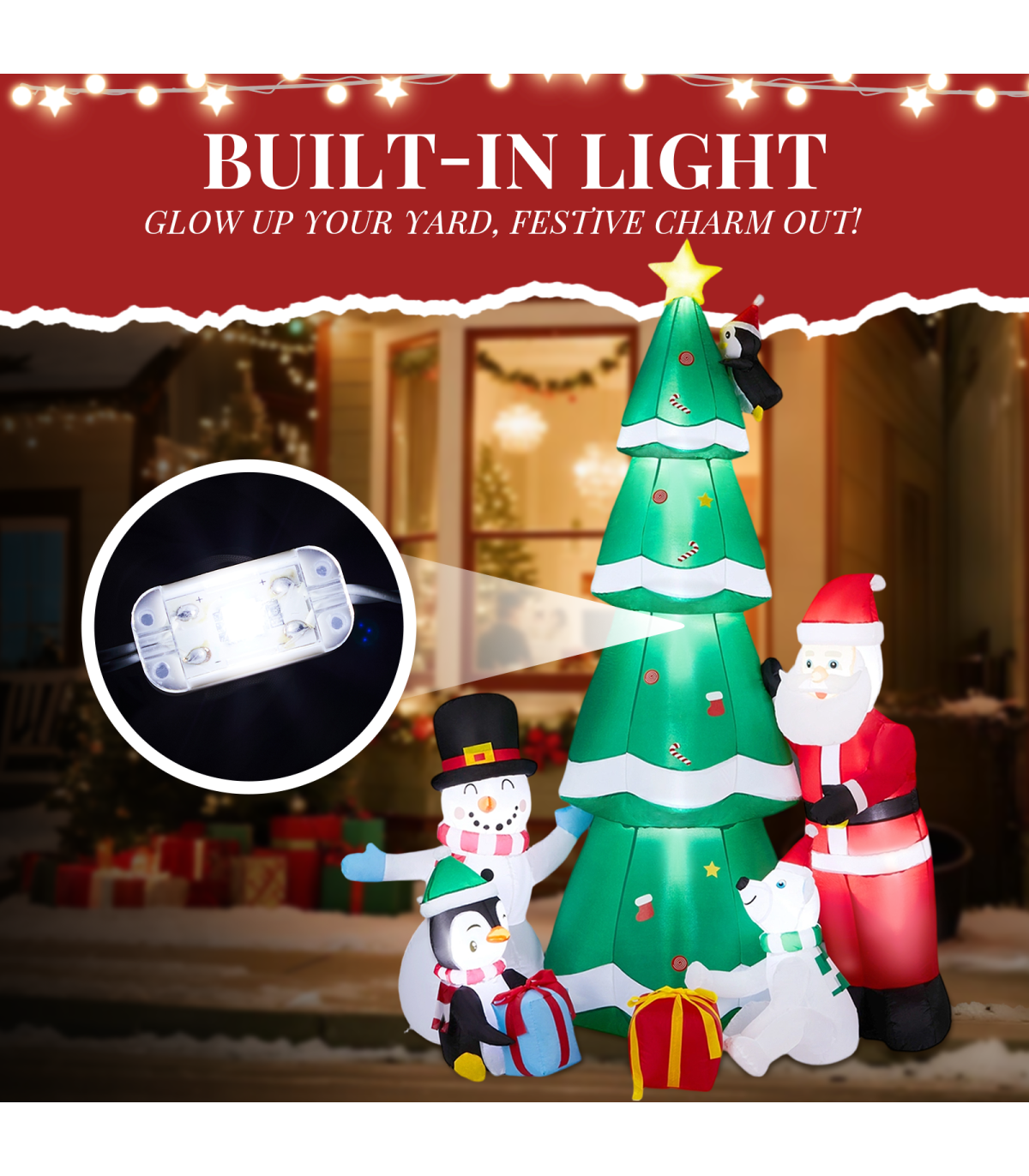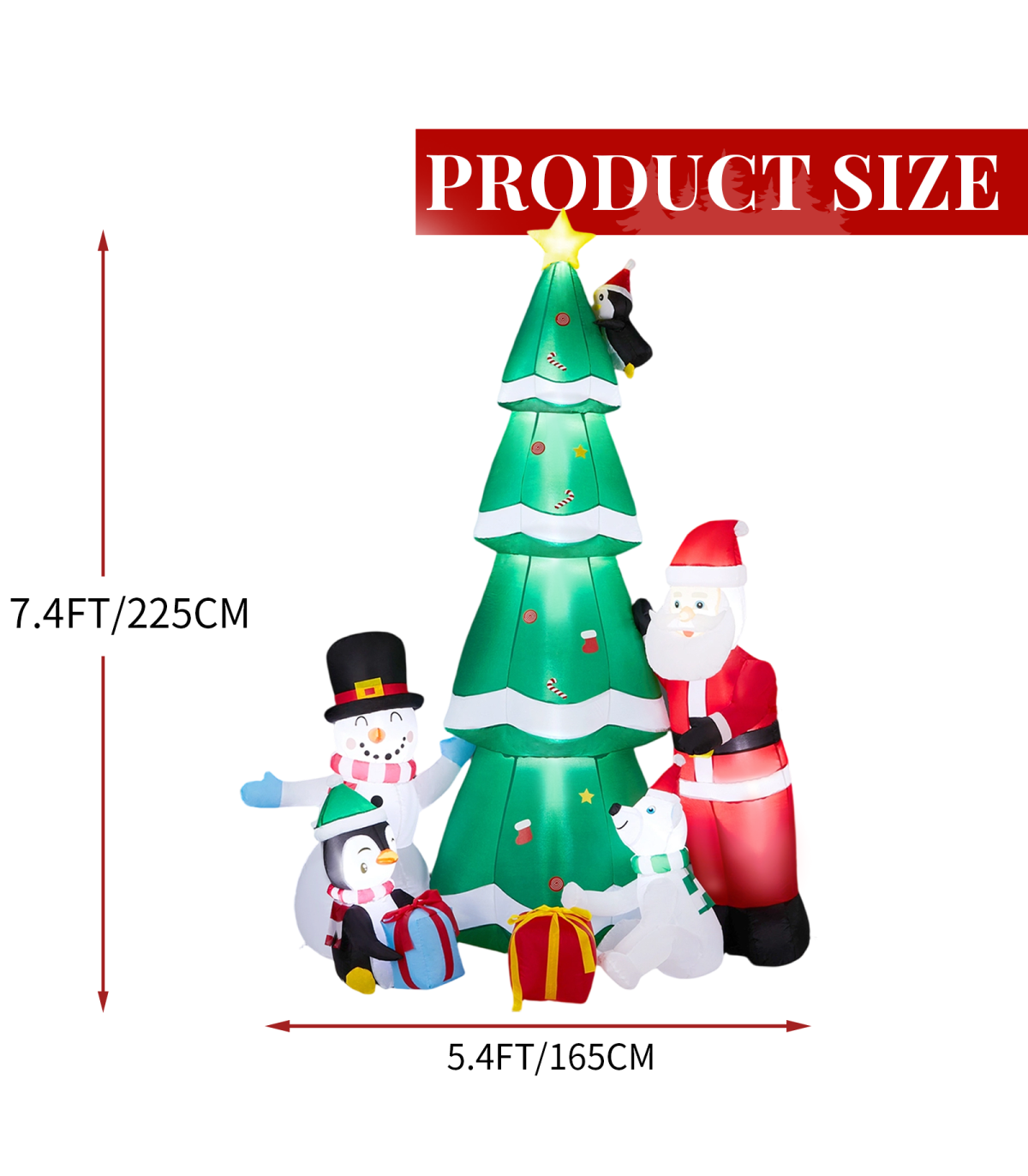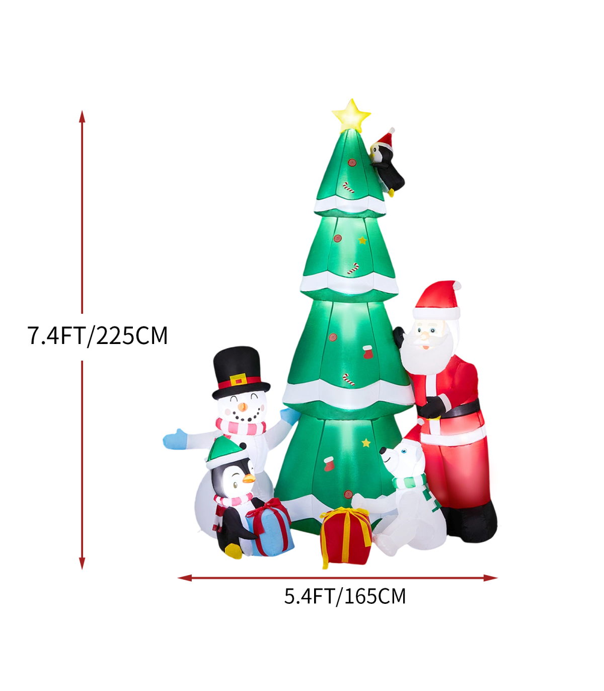 2.25M Lighted Christmas Inflatable Decoration, Inflatable Christmas Tree with Santa and Snowman, Funny Blow Up Yard Decorations with Built-in LED Lights for Holiday Party Front Yard Lawn Garden Decor
