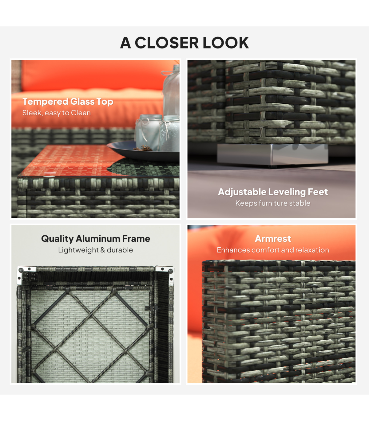 ● Material: Steel, PE rattan, Polyester, Tempered glass