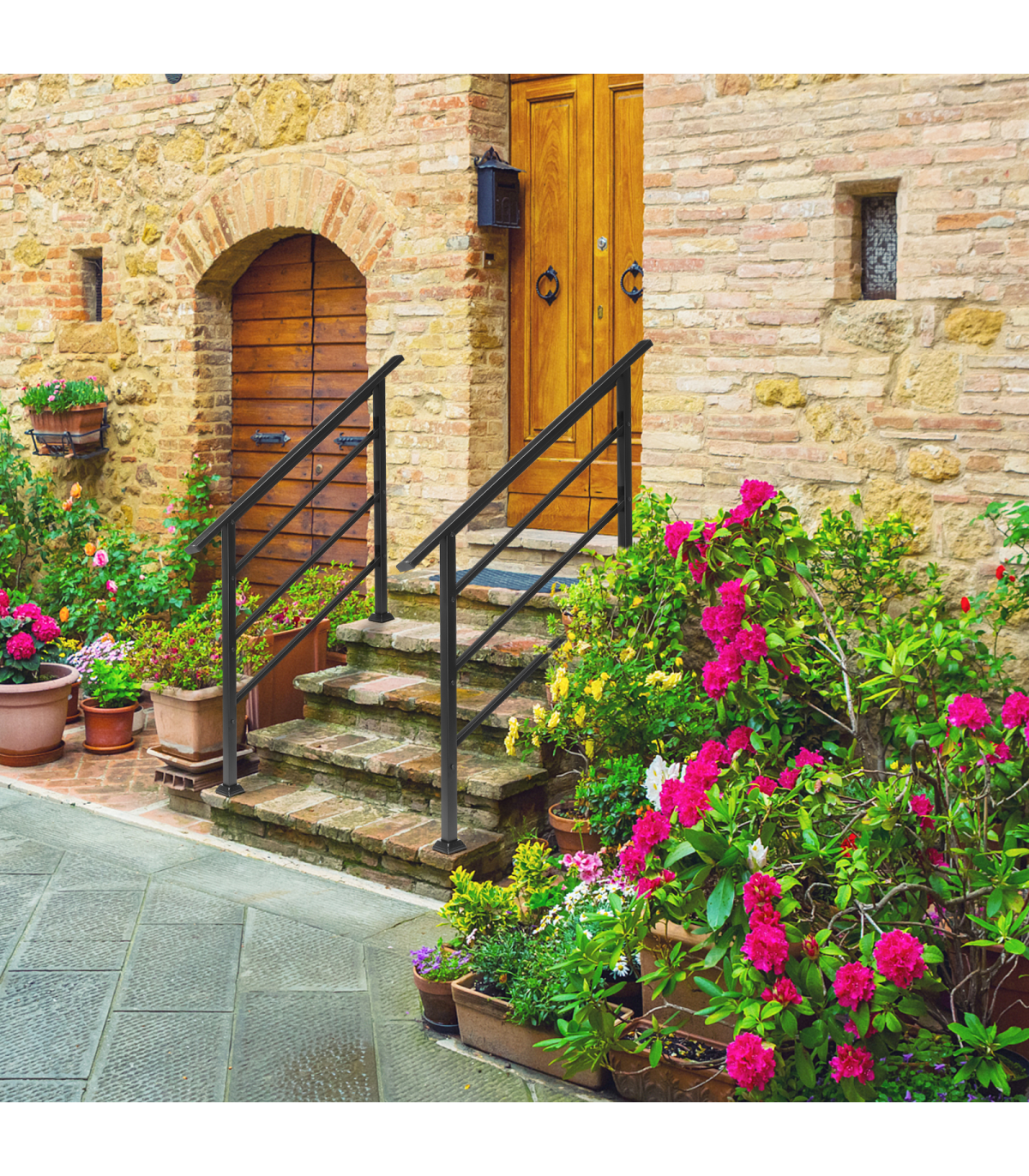 Elevate the safety and style of your outdoor steps with our robust Handrails for Outdoor Steps. This wrought iron handrail is a versatile solution designed to fit either one to four steps with ease, providing sturdy support for children, the elderly, and pregnant women. Its black powder-coated finish not only adds a sleek, minimalist touch to various exteriors but also ensures durability against the elements, resisting rain and rust. Perfect for residential homes, gardens, office buildings, hotels, or any establishment with stairs, this handrail is a blend of functionality, strength, and aesthetics.