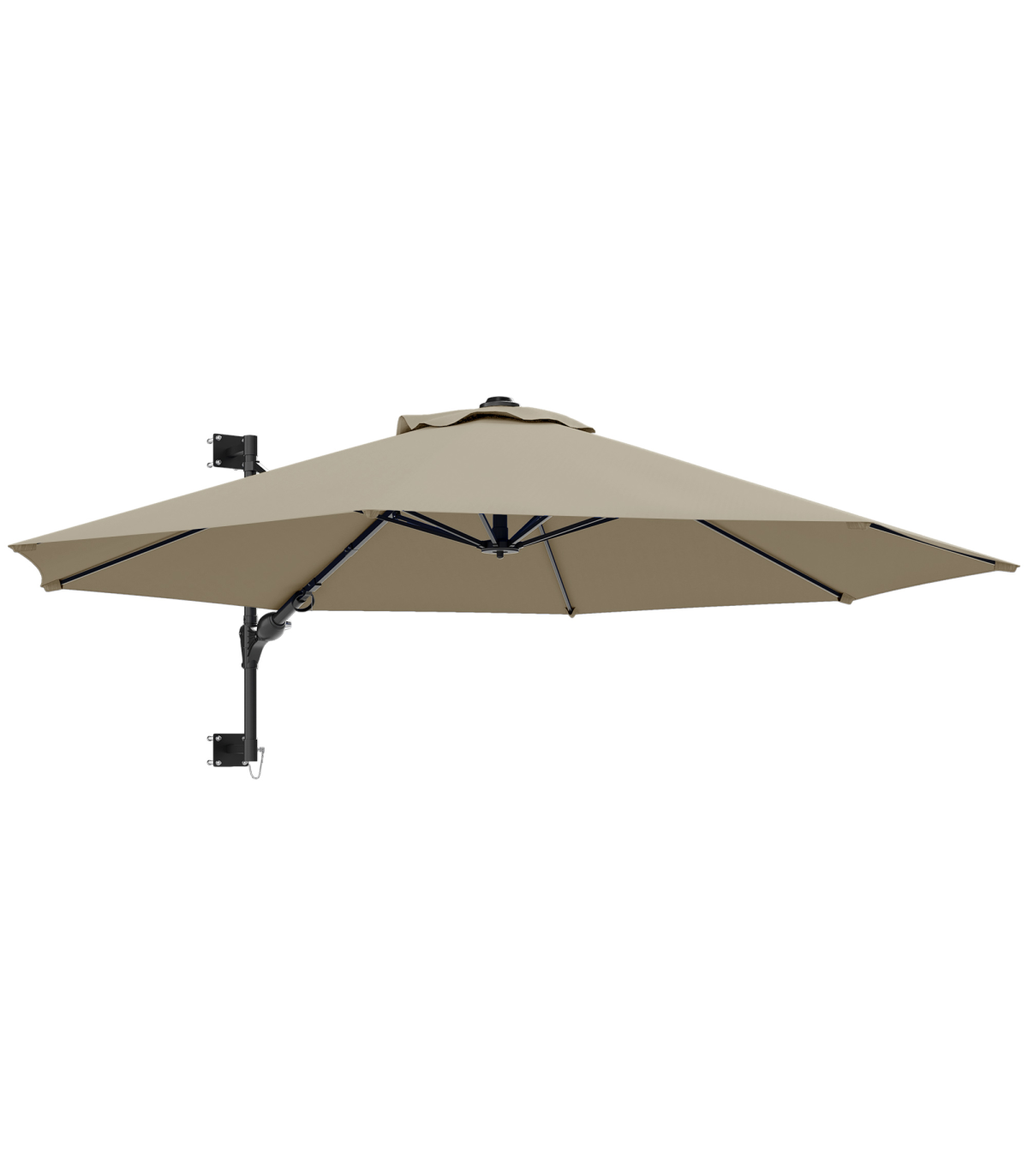 A garden parasol umbrella, but not as you know it. The wall mounted design of this Outsunny piece means there is no pole top support the upper: just attach to a concrete, wood or brick wall with the included accessories. The thick 180gsm polyester canopy creates plenty of safe shade