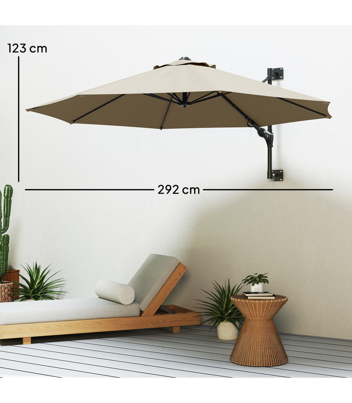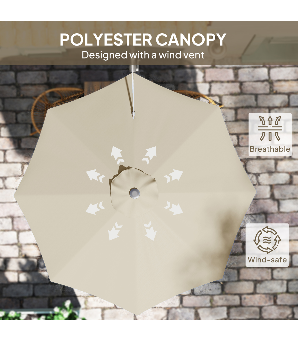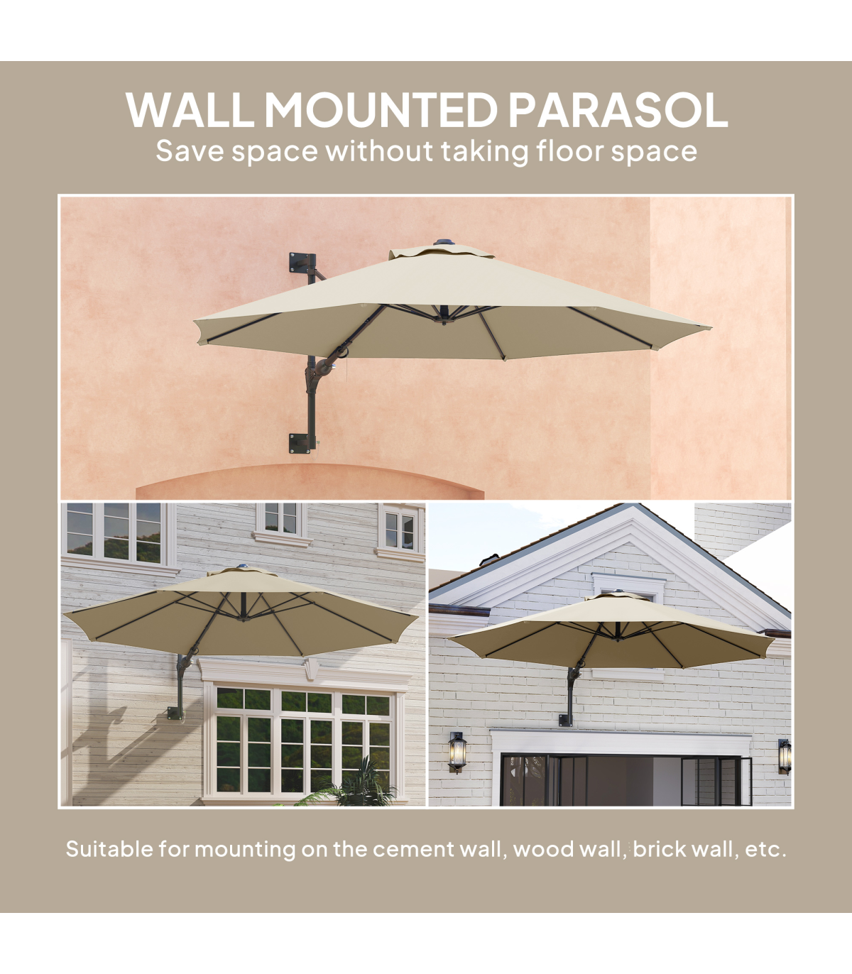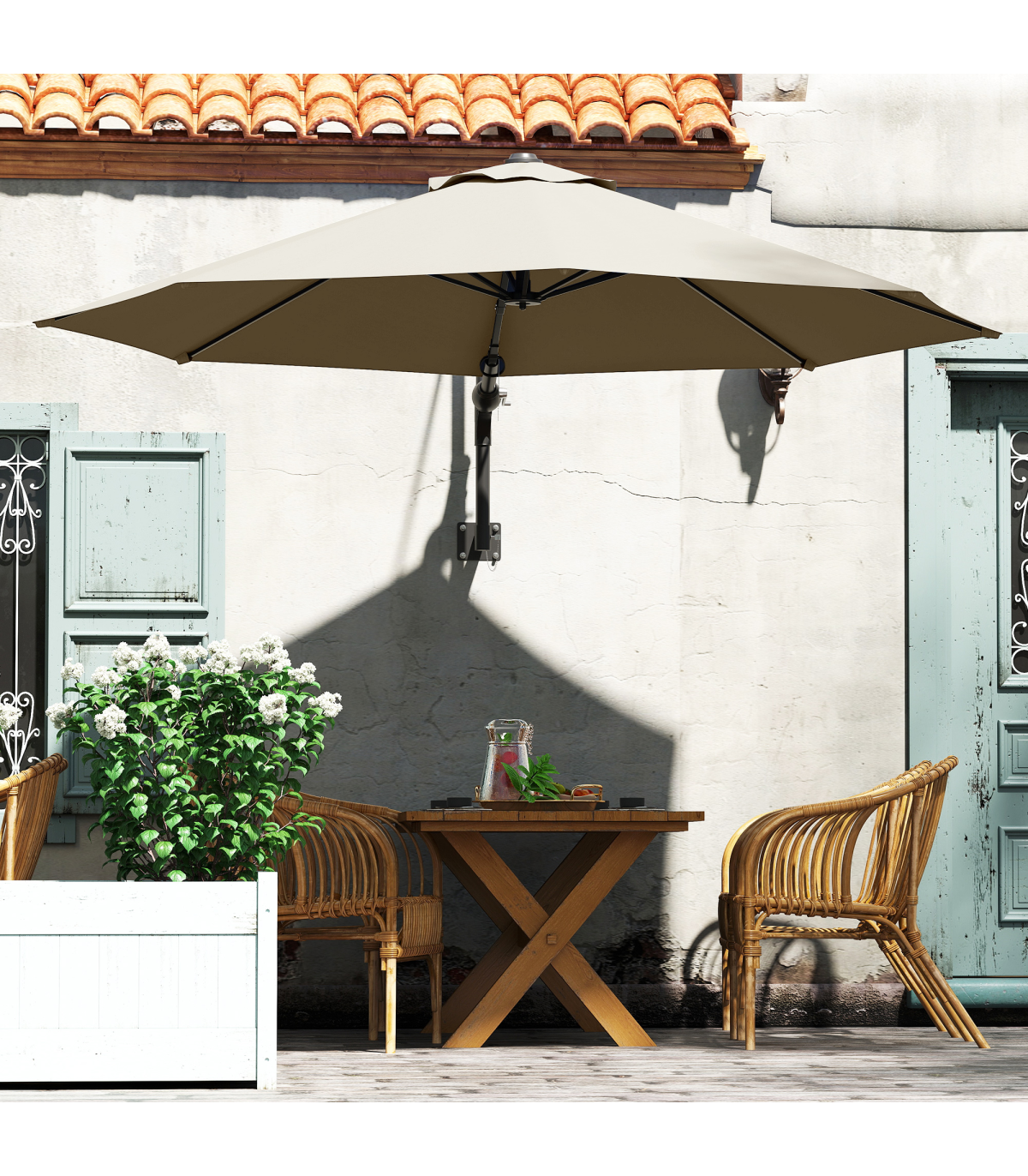 Outsunny Sun Parasol with Vent, Wall Umbrella for Patio, Garden, Khaki