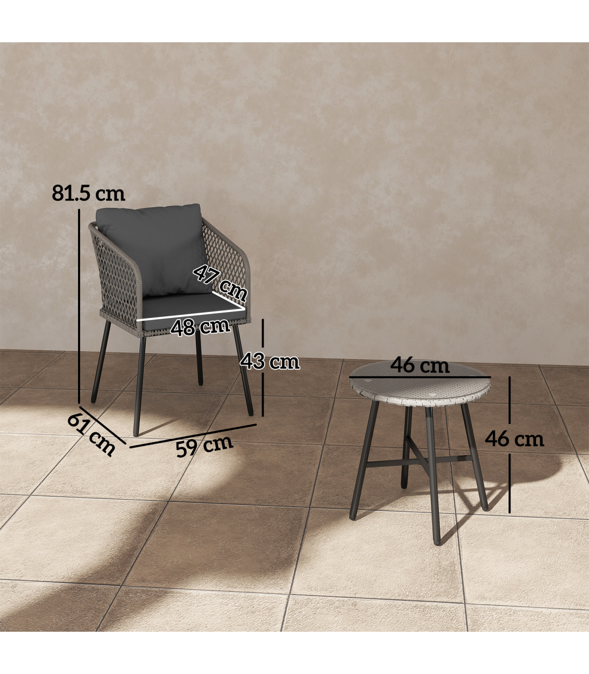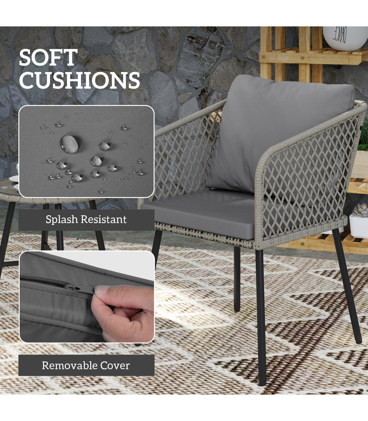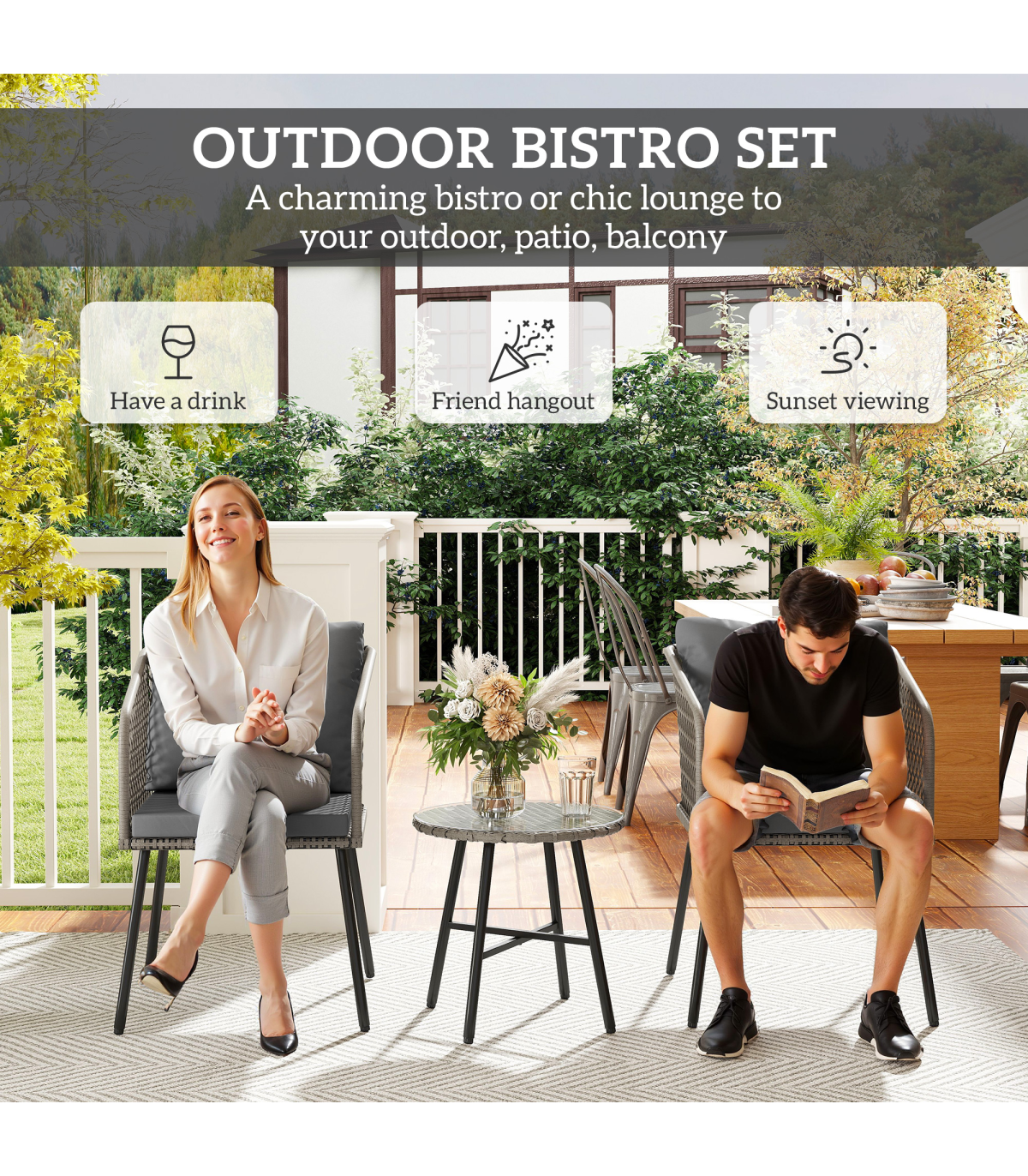 Outsunny 3 Piece Rattan Bistro Set with Cushions, Grey