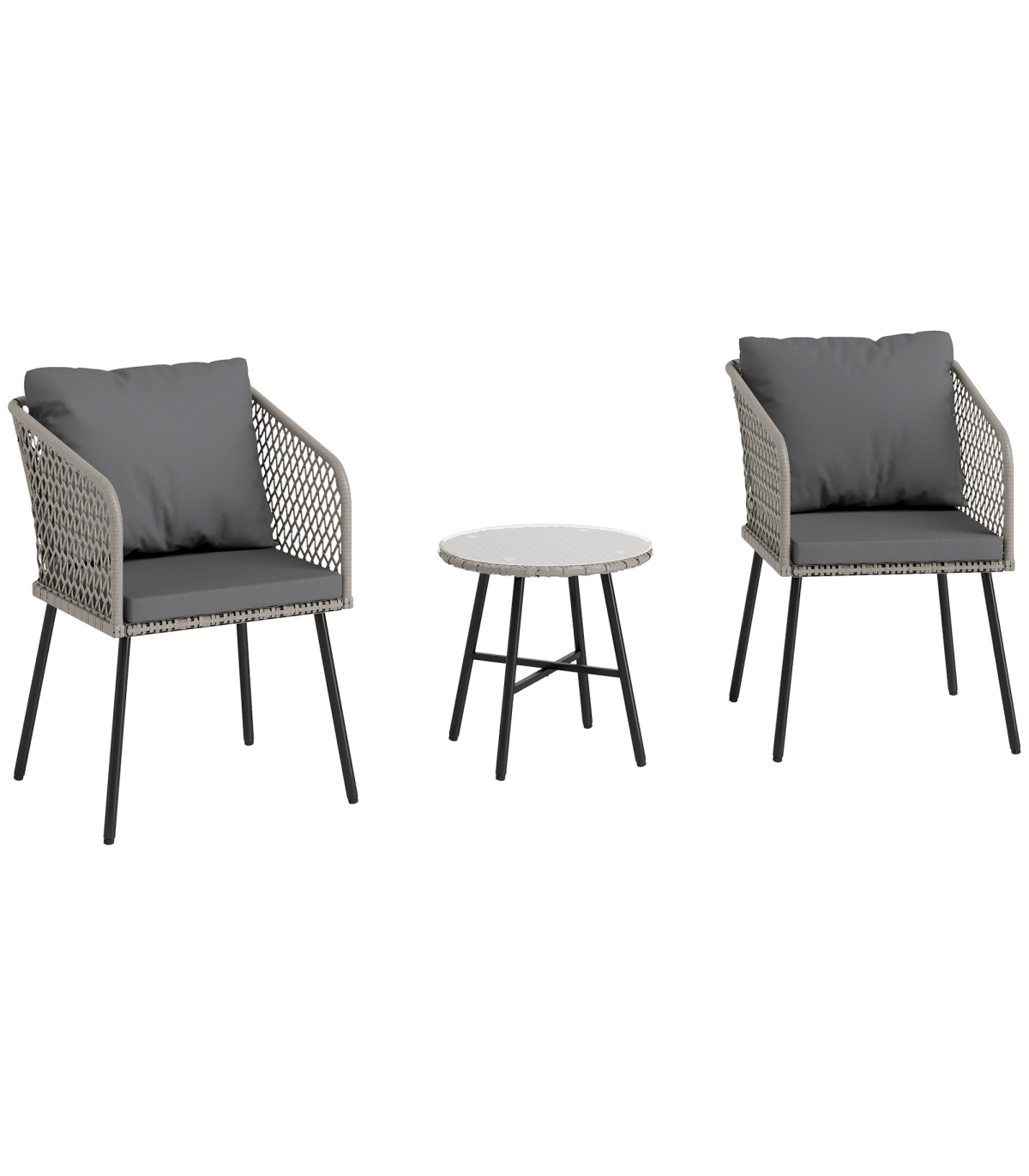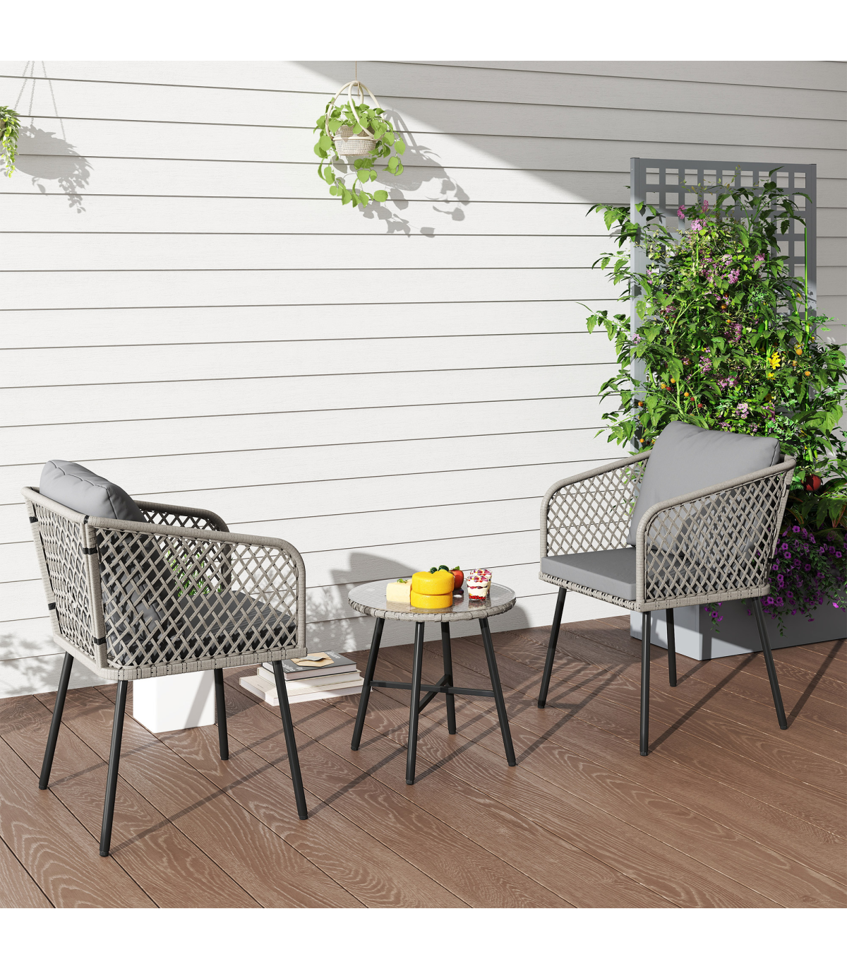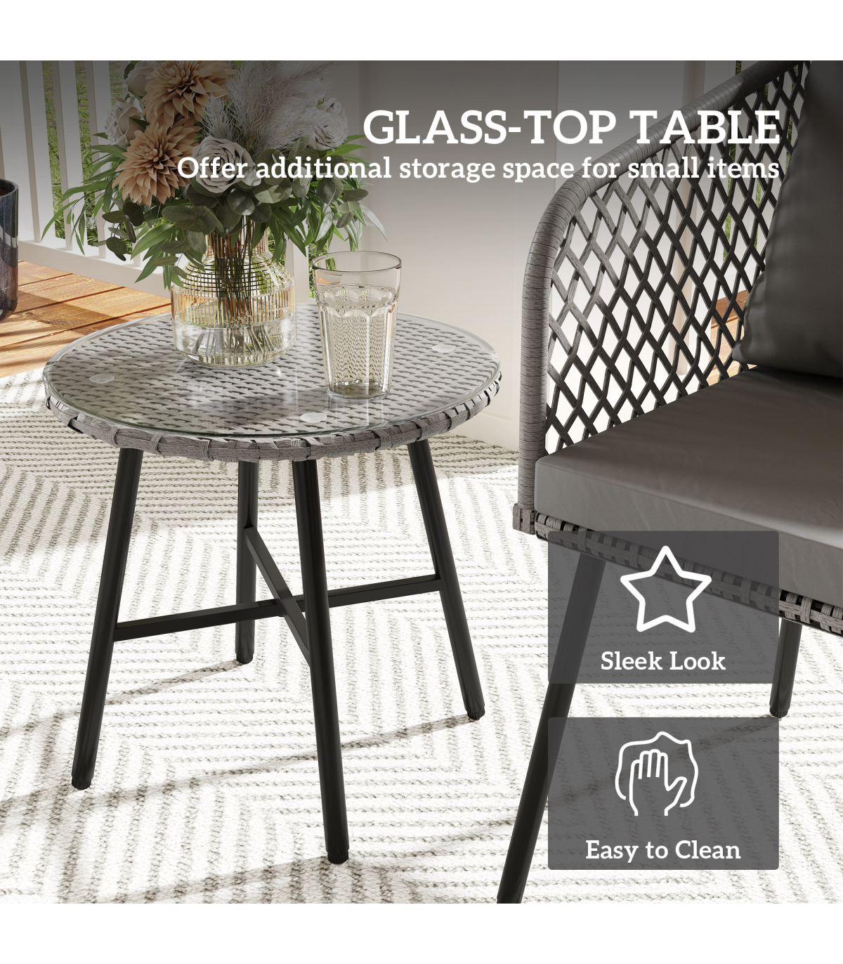 Outsunny 3 Piece Rattan Bistro Set with Cushions, Grey