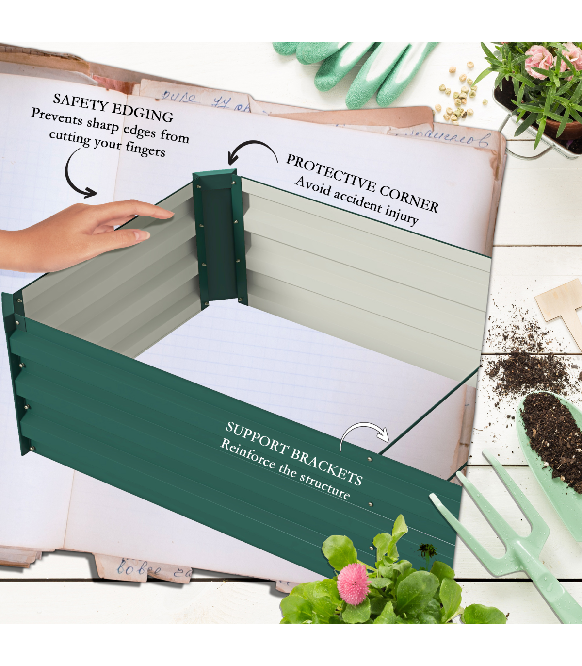 ● Planting Area: 237L x 57W x 30H cm