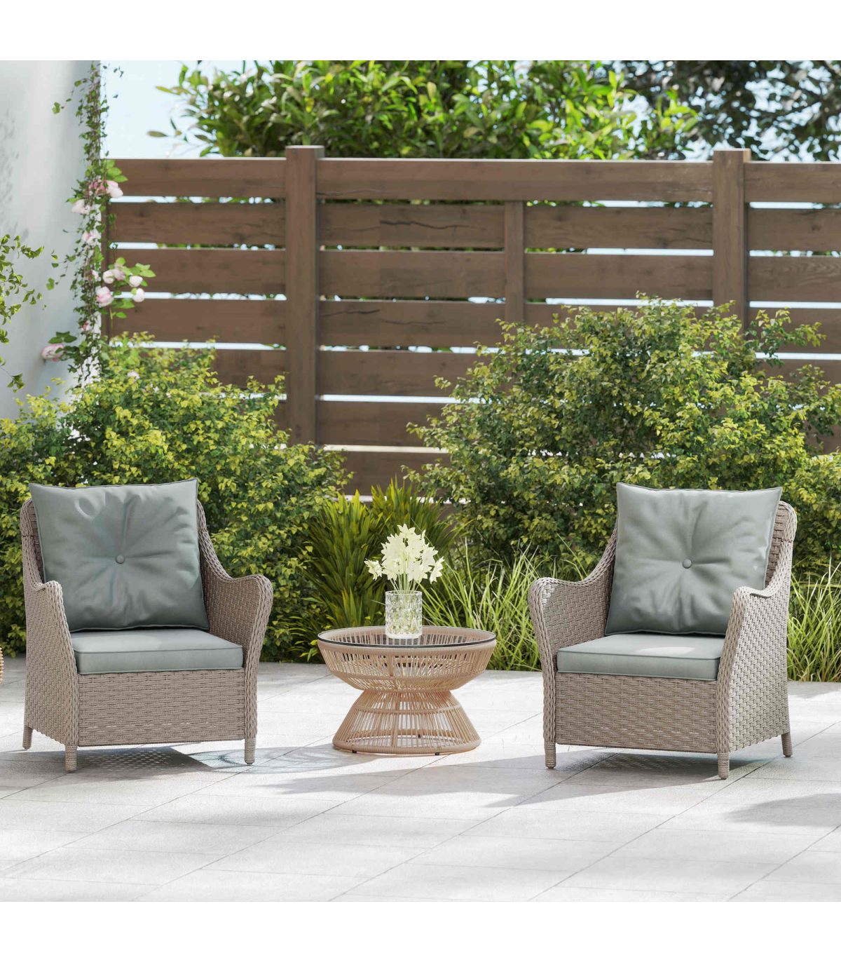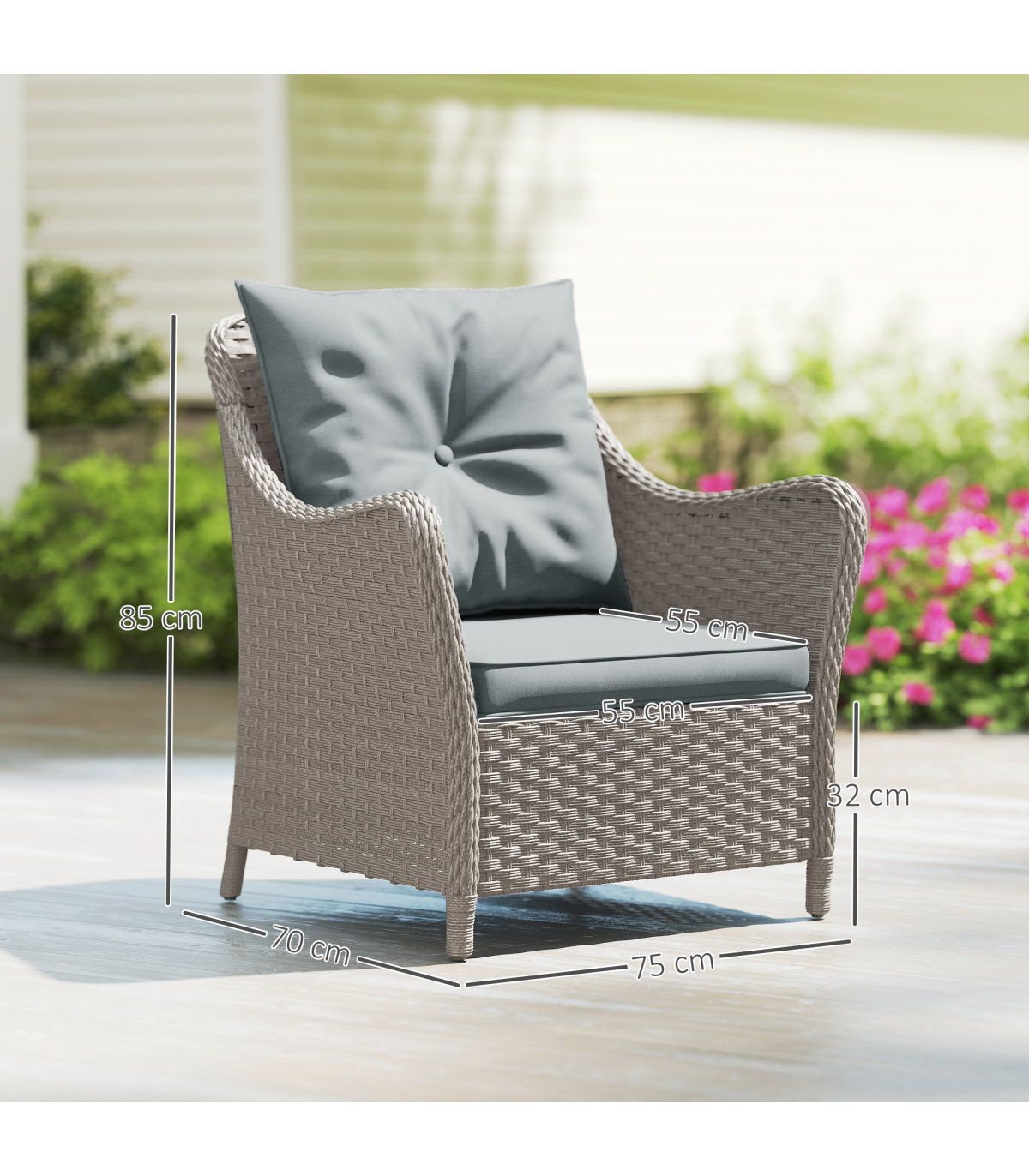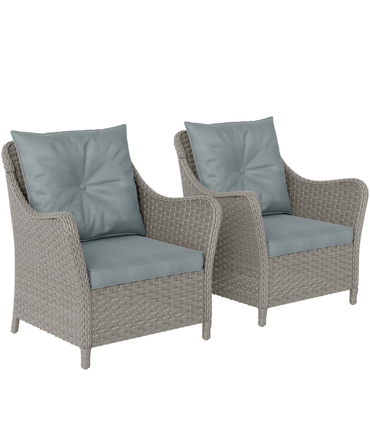 ● Each rattan chair has a wide and deep seat, armrests and sloping back support