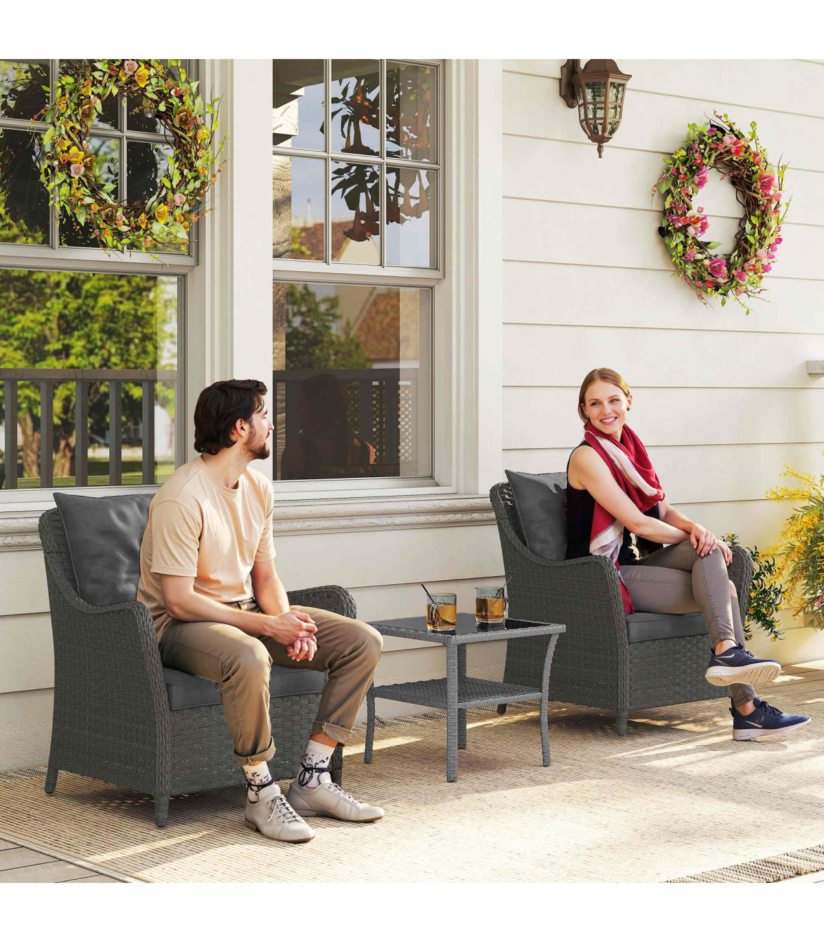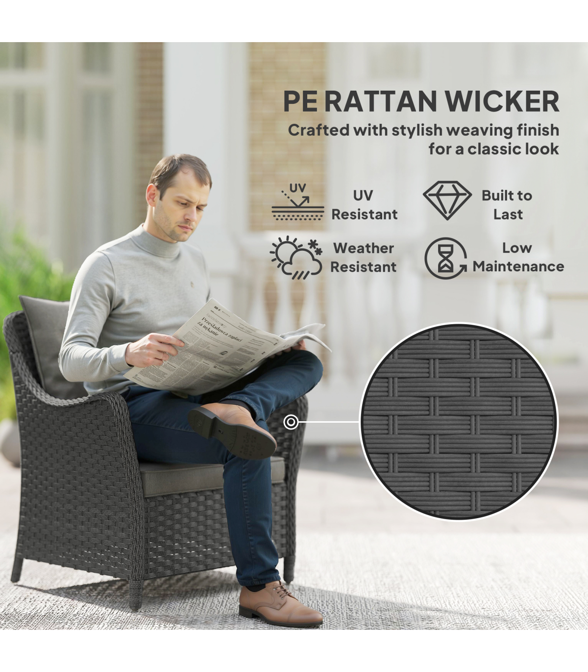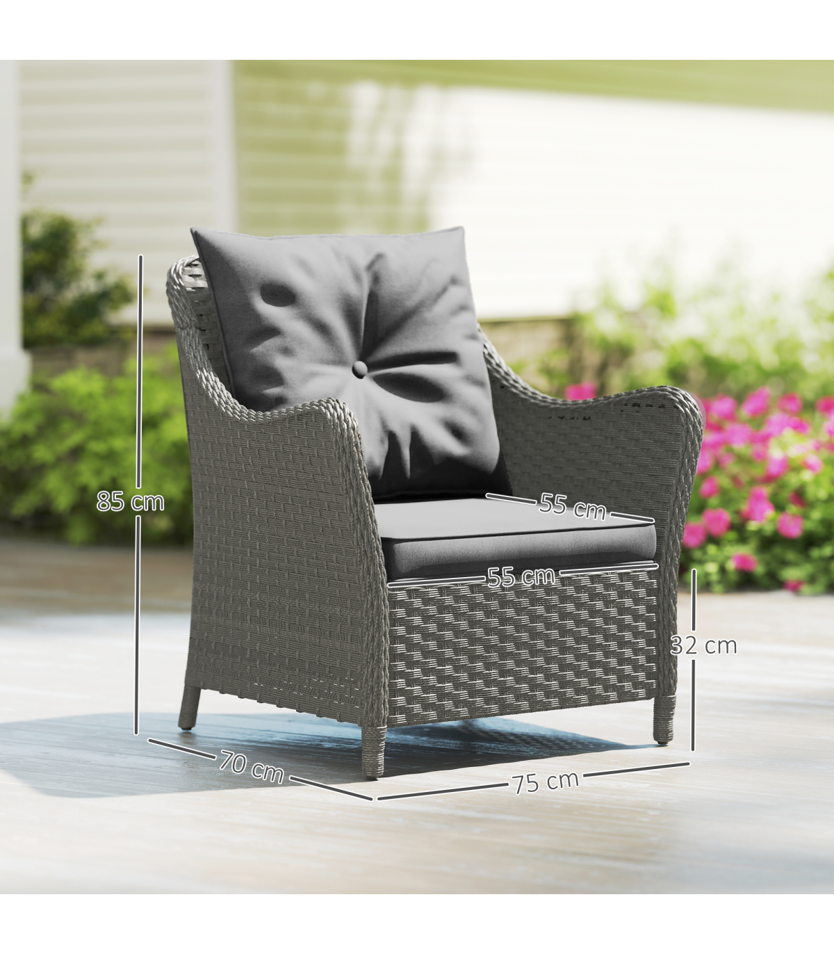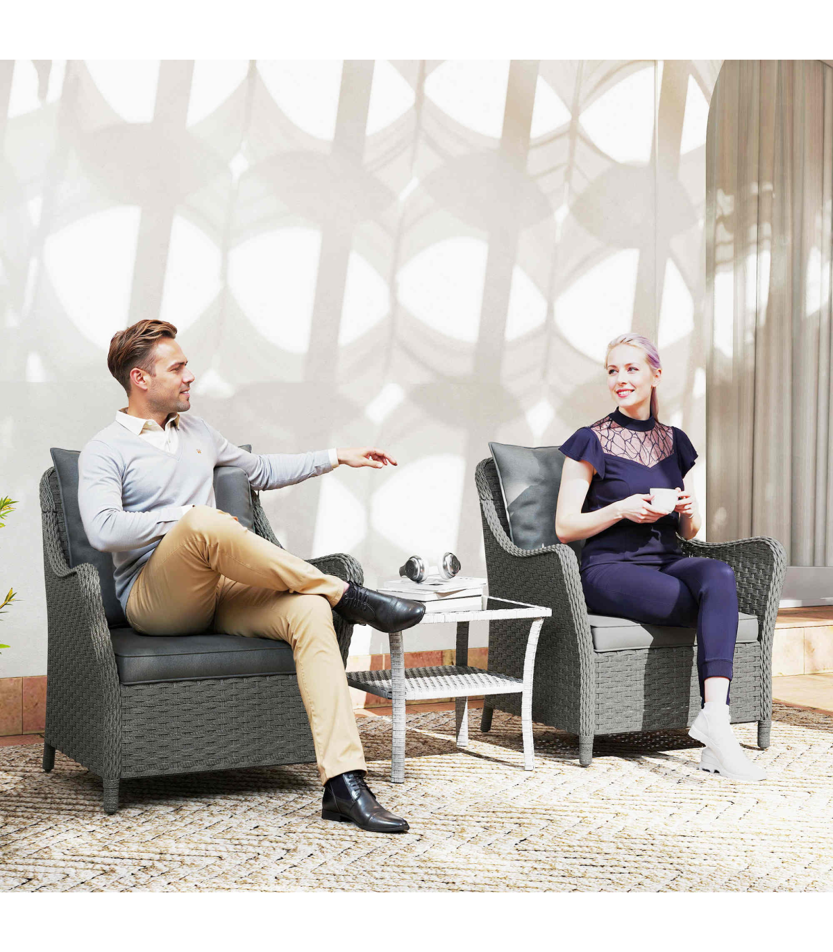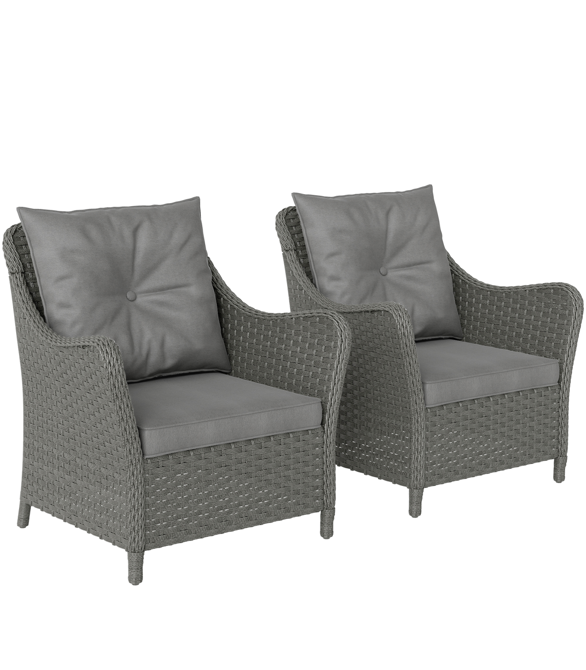 ● Each rattan chair has a wide and deep seat, armrests and sloping back support