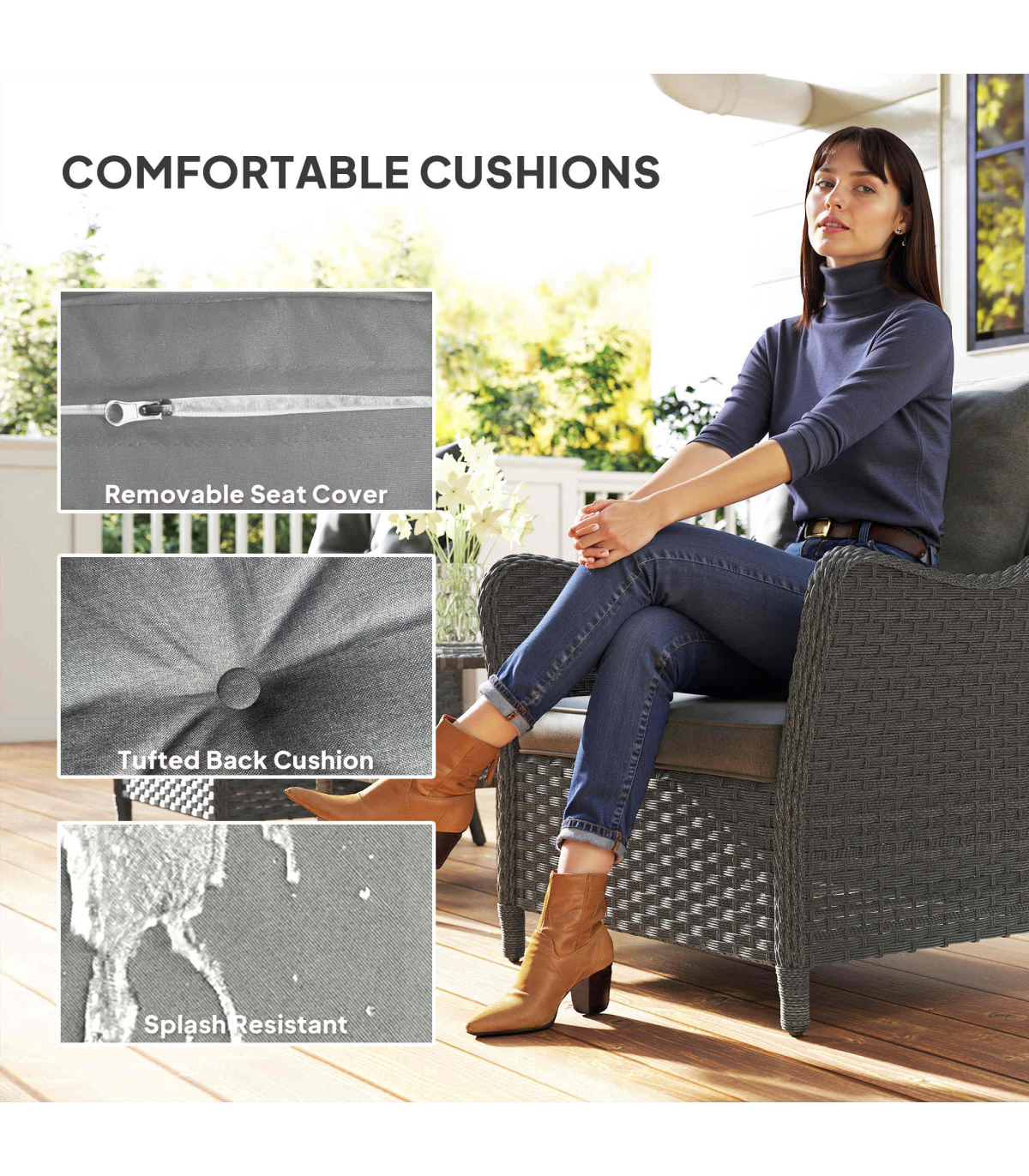 ● Steel frame for a strong core, wrapped in tough plastic rattan
