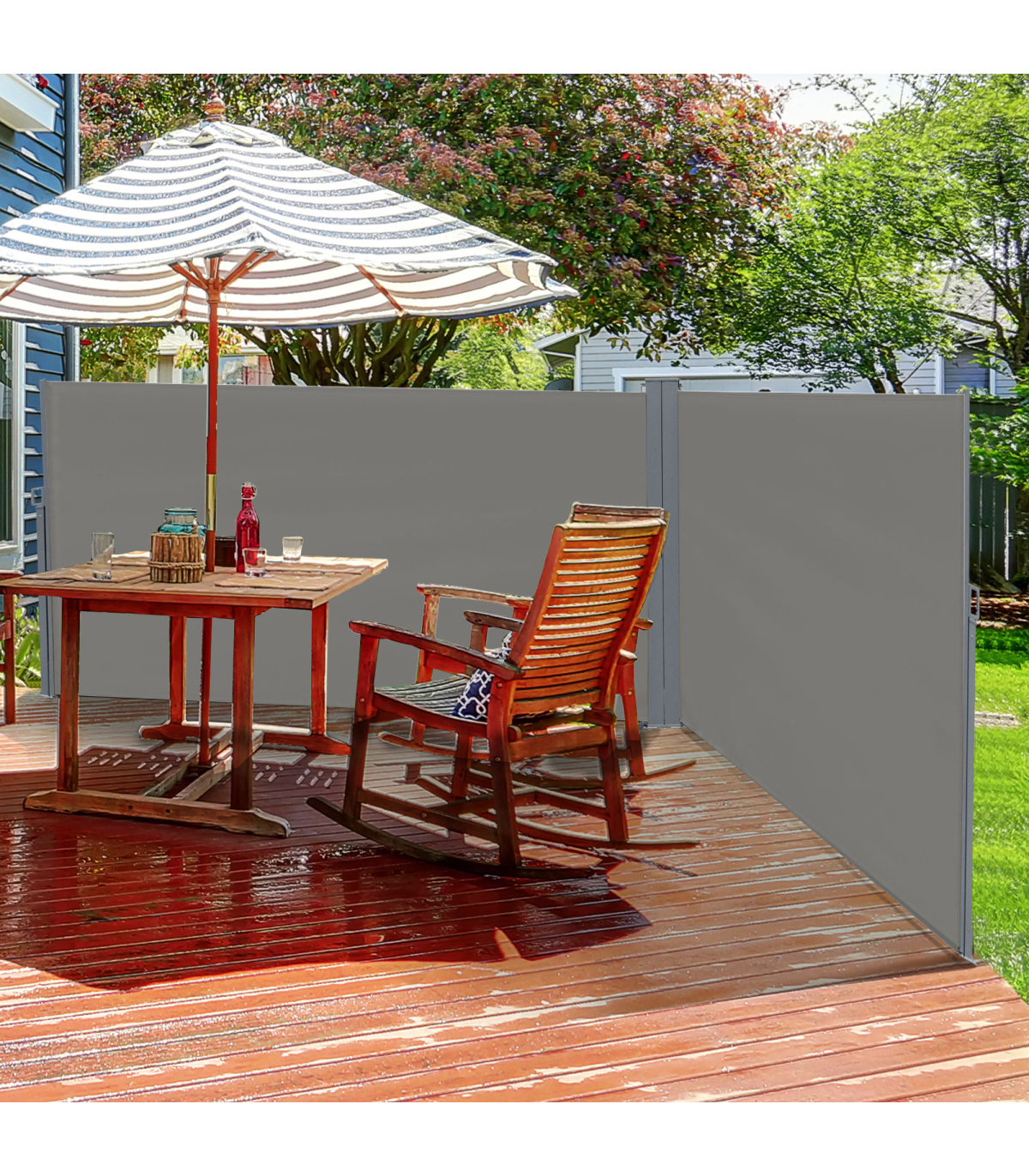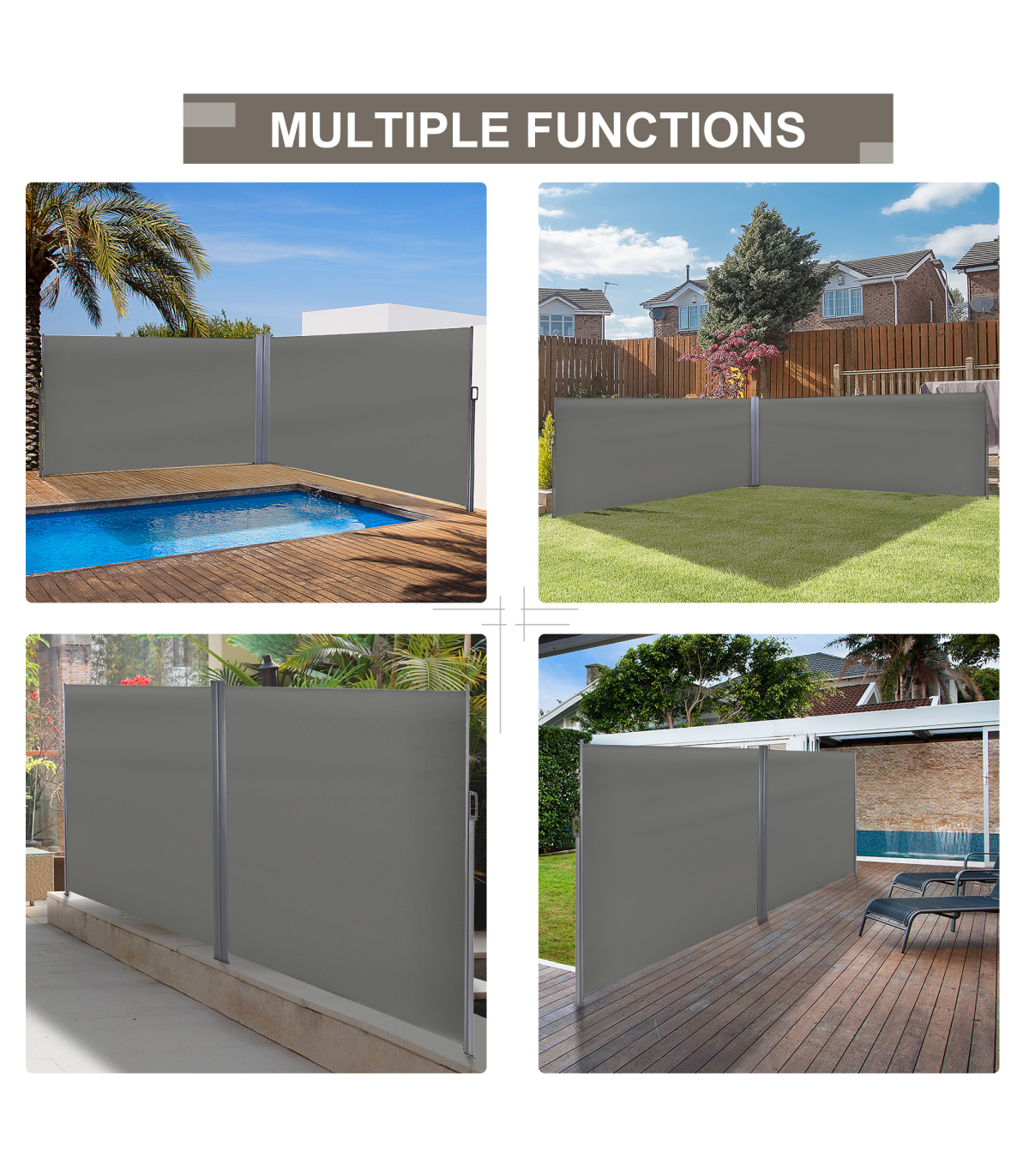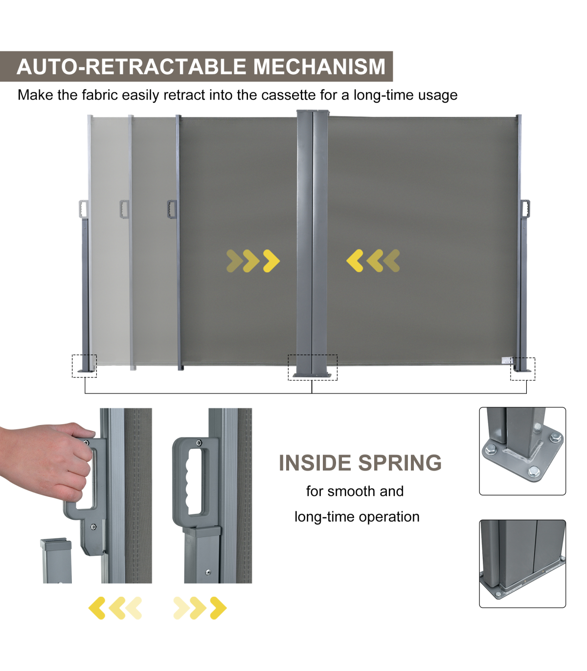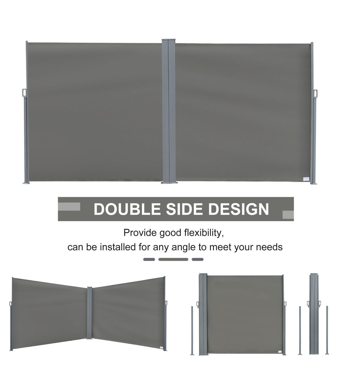 Do not ever worried about being exposed to the sun and a constant wind or lacking of privacy in the outdoors any more. Our Outsunny double side awning is a perfect choice to deal with these problems.Features with a durable and water-resistant, UV-resistant screen, protecting against the wind and low-lying sun, and creating a cozy place for you to enjoy in your balcony. Just pulled straight out and clip to lock, auto to roll back when not to use and won't take much room. Enjoy your afternoon with this side awning.
