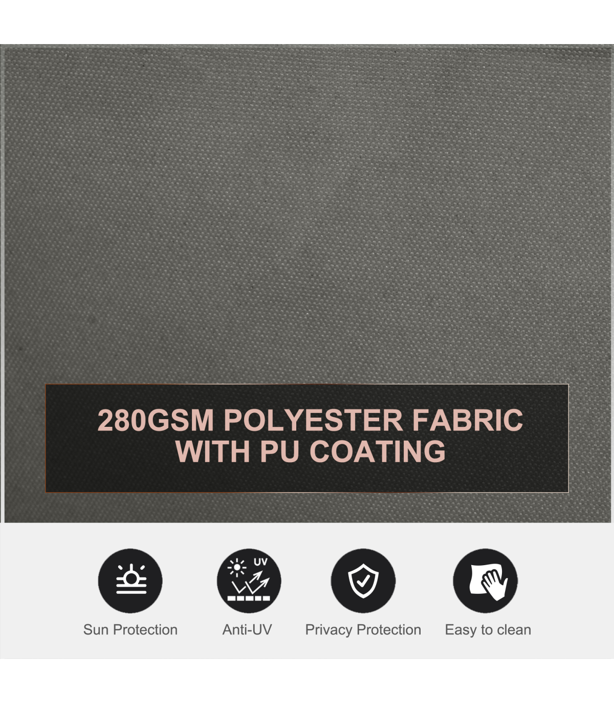 - Durable polyester fabric with PU coating is breathable, UV resistant and easy to clean