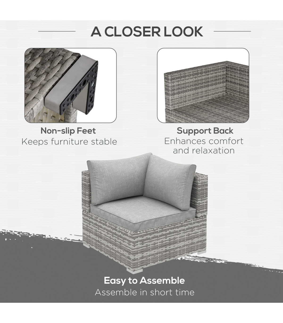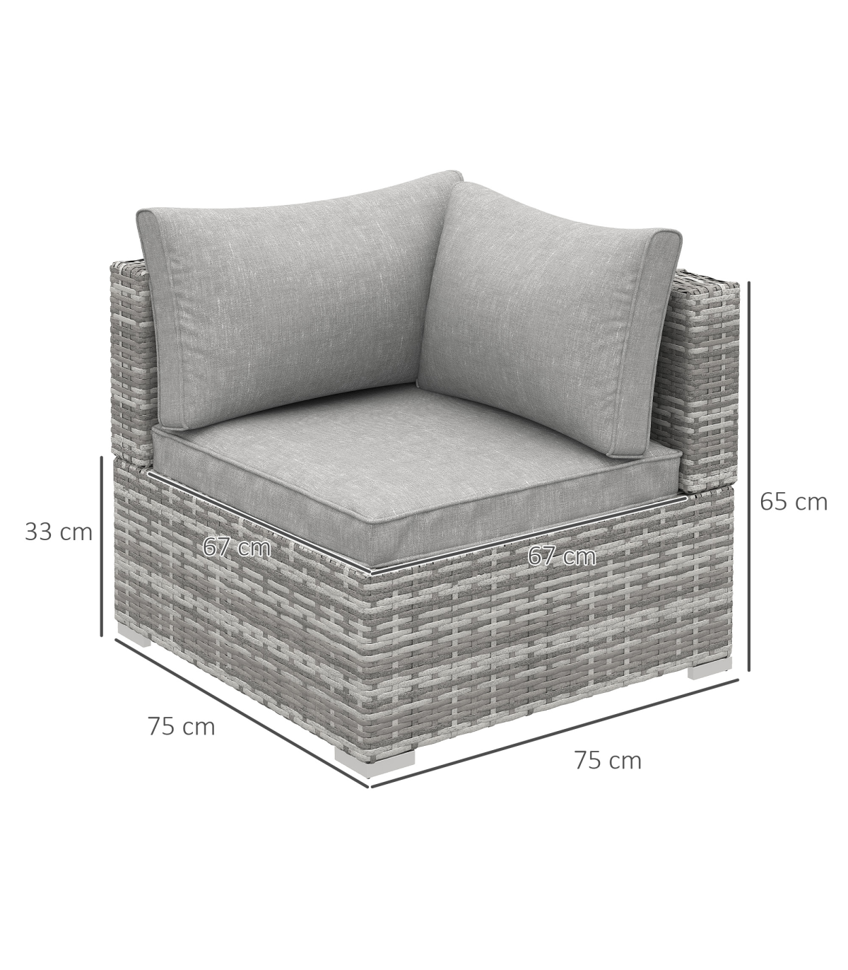 This modern rattan wicker coner sofa is design from Outsunny. It's made from rust-resistant galvanized metal frame with power coated, all hand weaving PE rattan wicker which is strong enough to withstand all weather conditions. With comfortable thick padded back-support cushions, cushion cover is removable and washable. Perfectly fit for different occasions, ideal suit for garden, balcony, patio, poolside, garden in your home.