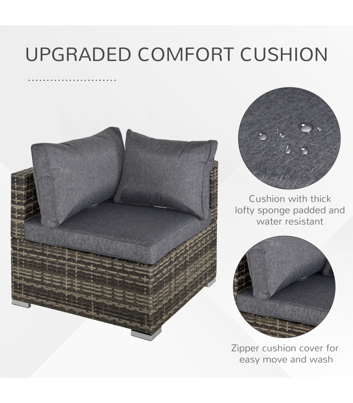 This modern rattan wicker coner sofa is design from Outsunny. It's made from rust-resistant galvanized metal frame with power coated, all hand weaving PE rattan wicker which is strong enough to withstand all weather conditions. With comfortable thick padded back-support cushions, cushion cover is removable and washable. Perfectly fit for different occasions, ideal suit for garden, balcony, patio, poolside, garden in your home.