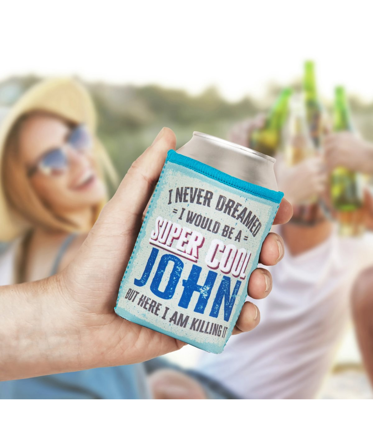 Can coolers are the perfect gift for male friends and relatives. Whether hosting a garden bbq, or pursuing a favourite hobby, the personalised can cooler ensures they will never lose their drink.