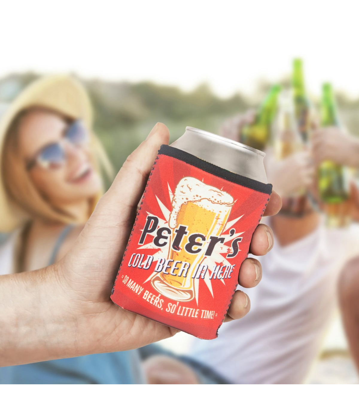 Can coolers are the perfect gift for male friends and relatives. Whether hosting a garden bbq, or pursuing a favourite hobby, the personalised can cooler ensures they will never lose their drink.