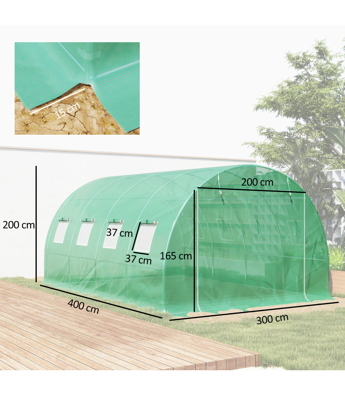 Dimensions: 200H x 400L x 300Wcm. Door: 200W x 165Hcm. Window: 37L x 37Wcm