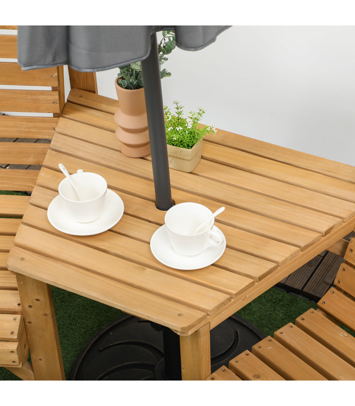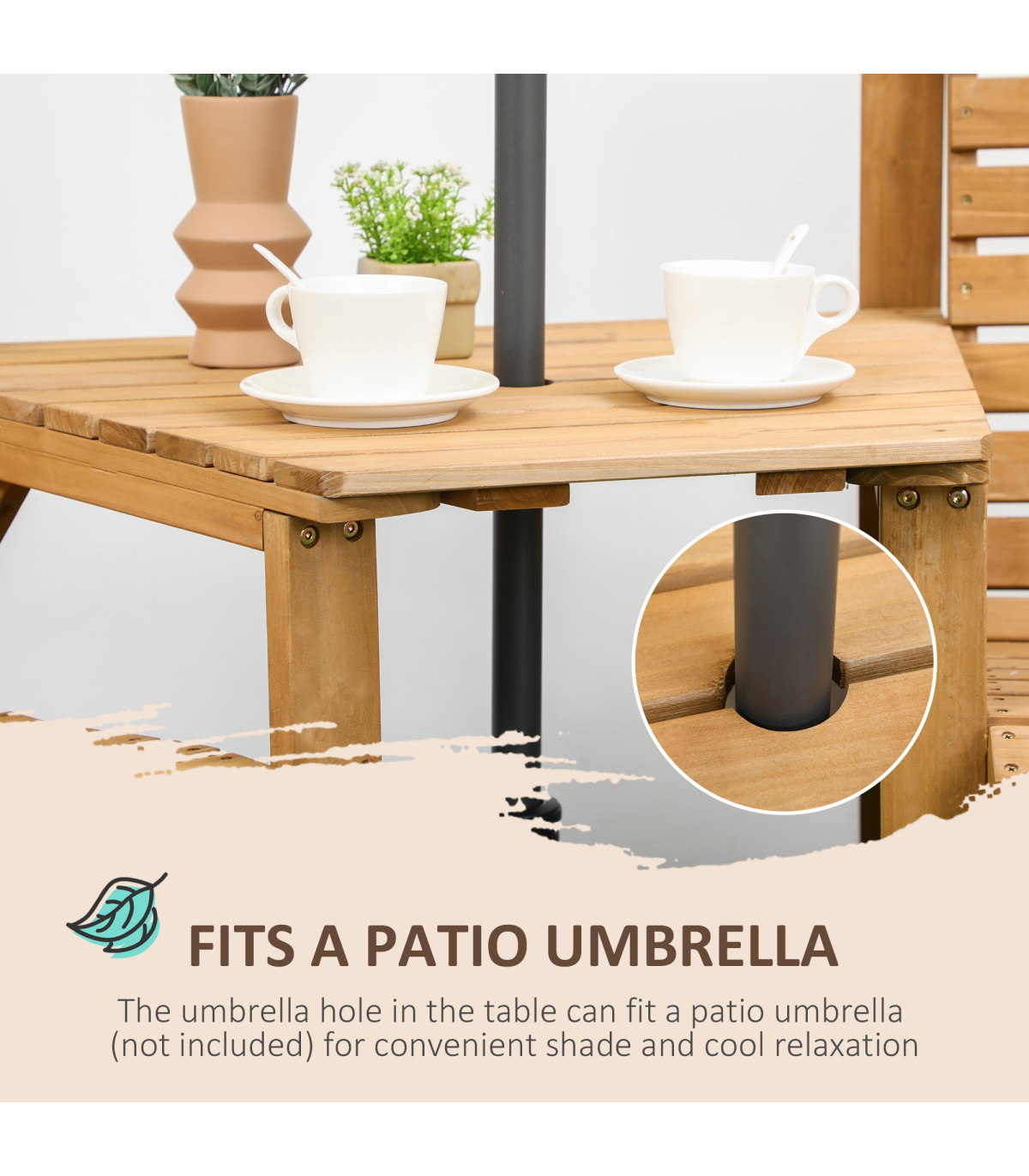 Outsunny Wooden Garden Love Seat w/ Coffee Table Umbrella Hole Partner Bench