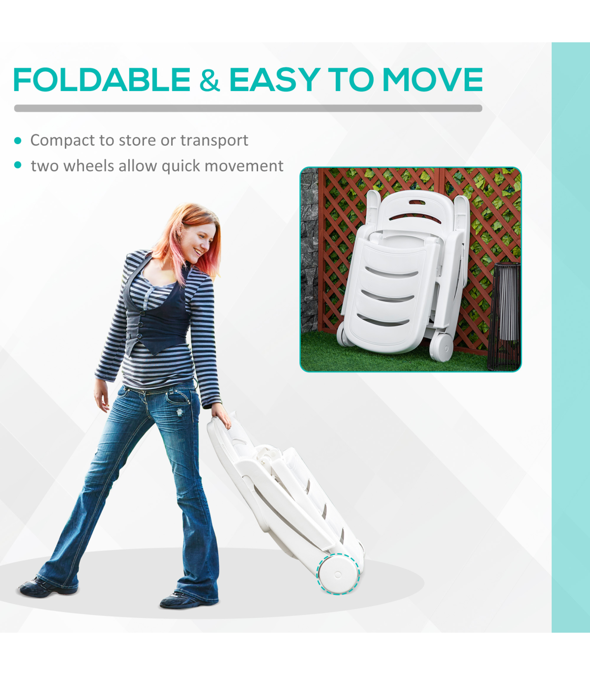 ● Foldable and with wheels for easy storage and transport